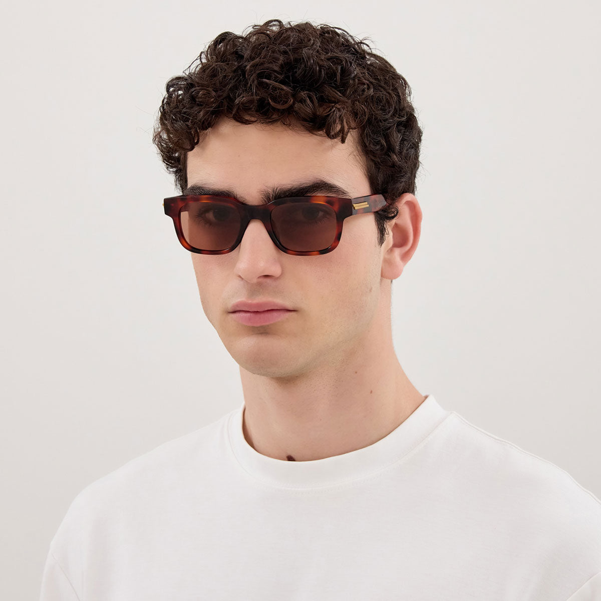 Gli occhiali da sole Bottega Veneta BV1411S si distinguono per il loro design sofisticato e contemporaneo. Il frontale presenta un ribbon allungato, dettaglio iconico della Maison, visibile e integrato con eleganza nella forma rettangolare della montatura. Linee pulite e materiali di alta qualità rendono questo modello un accessorio distintivo, ideale per chi cerca uno stile ricercato ma discreto.