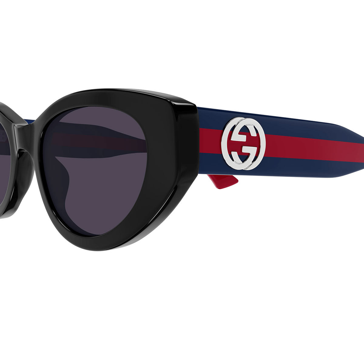 Gli occhiali da sole Gucci GG1862S combinano eleganza e modernità con una montatura commerciale caratterizzata da una forma cat-eye stretta. Il dettaglio Web sulle aste di media altezza conferisce un tocco distintivo, mentre il nuovo logo con scritta in oro e argento, creato da Sabato De Sarno, è ben visibile lateralmente. La palette di colori, sebbene commerciale, è fresca e accattivante, con il dettaglio Web nelle tonalità canoniche verde/rosso/verde e blu/rosso/blu, che arricchiscono il design con un tocco sportivo e contemporaneo.