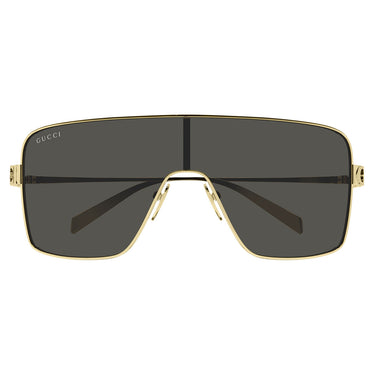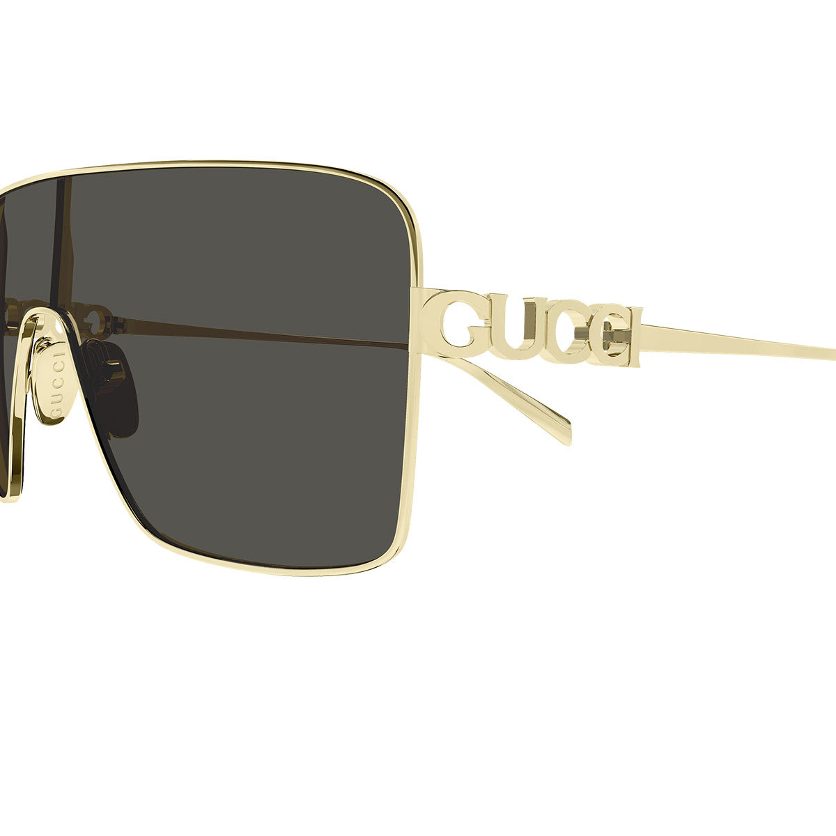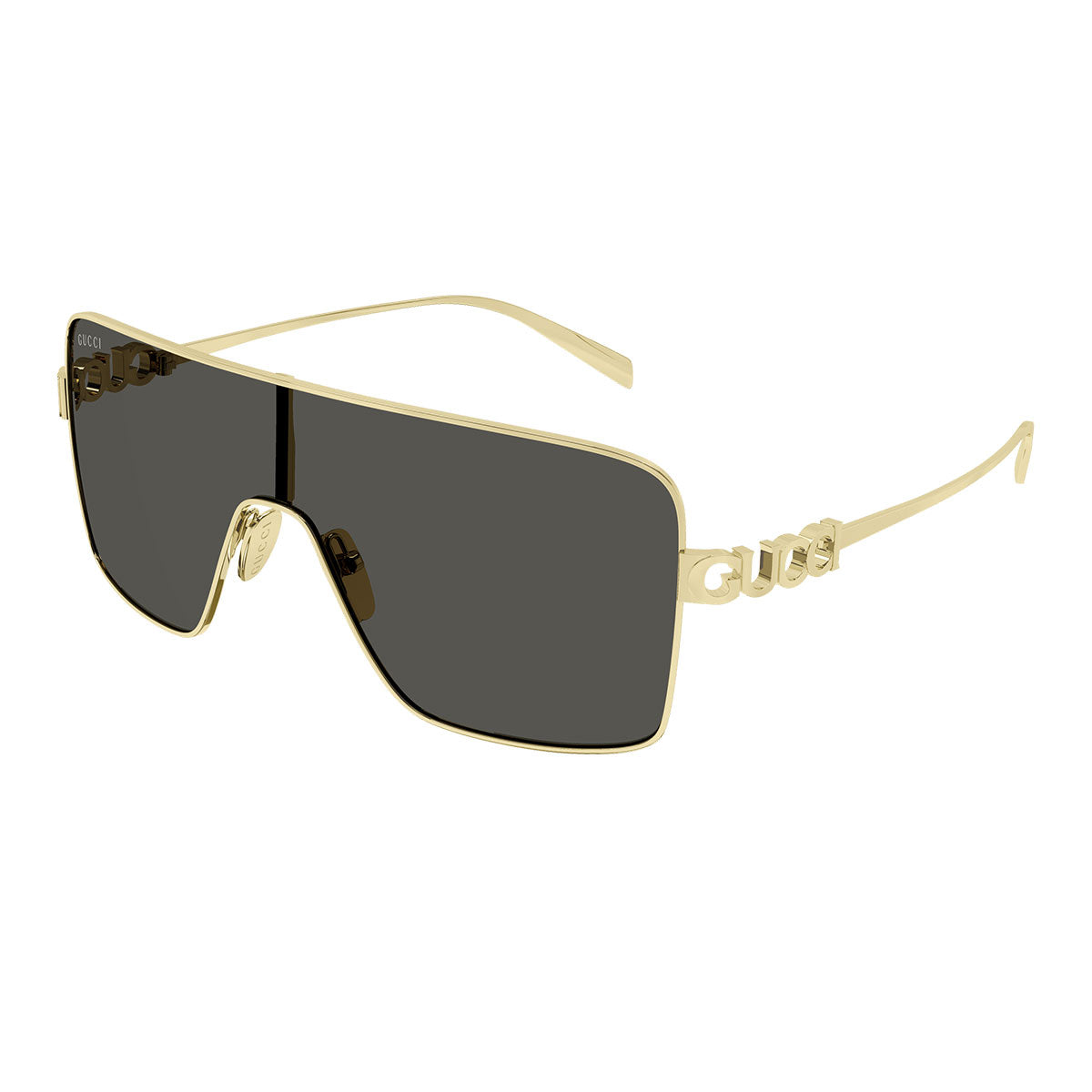 Occhiali da sole dal forte appeal fashion, realizzati interamente in metallo innovativo, per un look audace e ultramoderno. La montatura presenta una maschera squadrata oversize, dal design deciso e avvolgente, pensata per chi ama distinguersi. Su entrambi i lati spicca il logo con scritta tridimensionale e ricurvo, elemento iconico che in alcune SKU è ulteriormente valorizzato da strass, per un tocco ancora più glamour. La palette cromatica è cool e unisex, perfetta per esprimere personalità e stile nel segno dell’estetica contemporanea firmata Gucci.