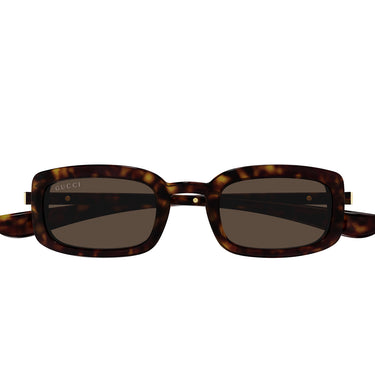 Occhiali da sole dal design iniettato e dall’inconfondibile allure vintage, perfetti per chi cerca uno stile d’impatto ma versatile. La forma rettangolare della montatura si unisce a una struttura flessibile, pensata per offrire comfort quotidiano senza rinunciare all’eleganza. Le aste sono impreziosite da una placchetta metallica decorativa e dal lettering logo Gucci, discreto ma iconico. La palette cromatica spazia tra tonalità classiche e vivaci, offrendo opzioni ideali per ogni personalità e occasione. Un accessorio che unisce estetica rétro e spirito contemporaneo, firmato Gucci.