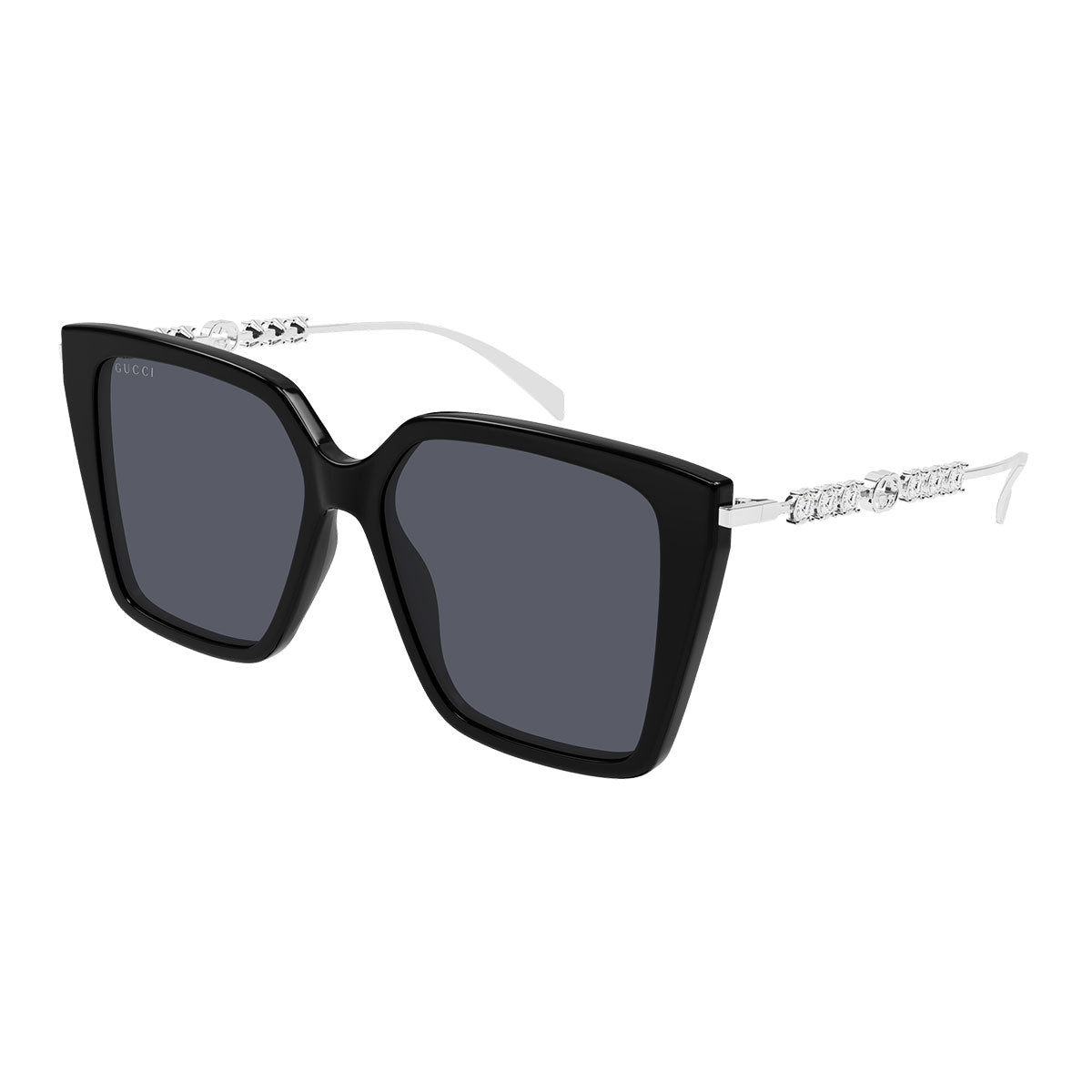 Gli occhiali da sole Gucci GG1967S rappresentano una dichiarazione di stile decisa, pensata per donne che amano distinguersi attraverso accessori di carattere, ricchi di dettagli preziosi.