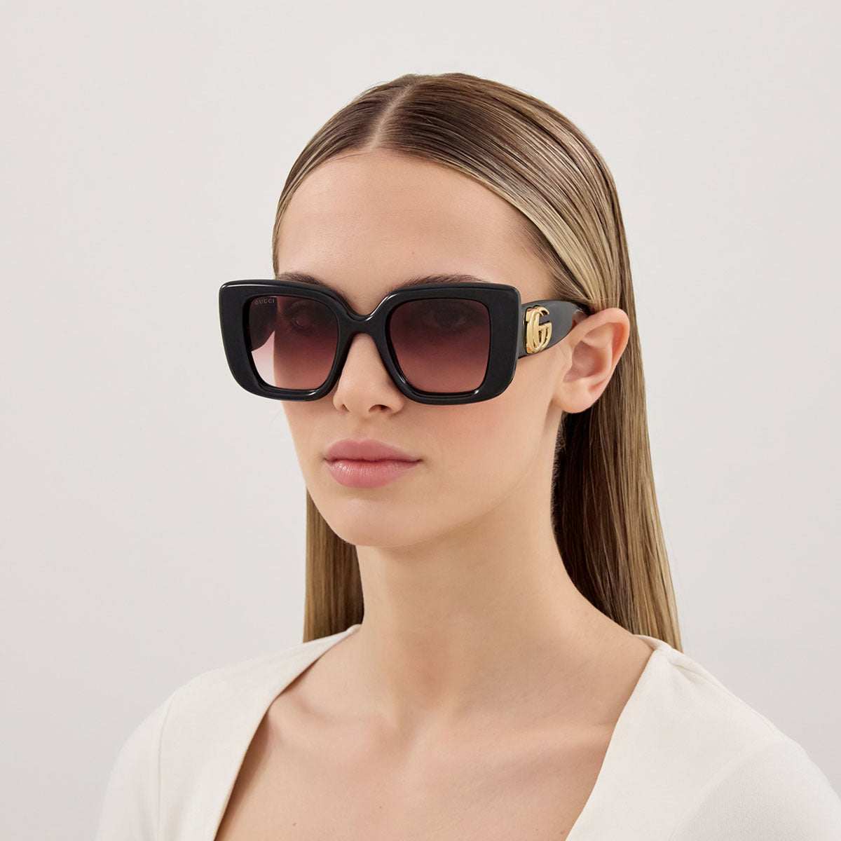 Gli occhiali da sole Gucci GG1975S sono un modello carry-over che trae ispirazione dalla borsa d’esordio firmata da Sabato De Sarno, reinterpretando uno dei simboli più iconici della Maison: il logo Double G, qui proposto in una versione arrotondata che richiama elegantemente la curva della borsa.