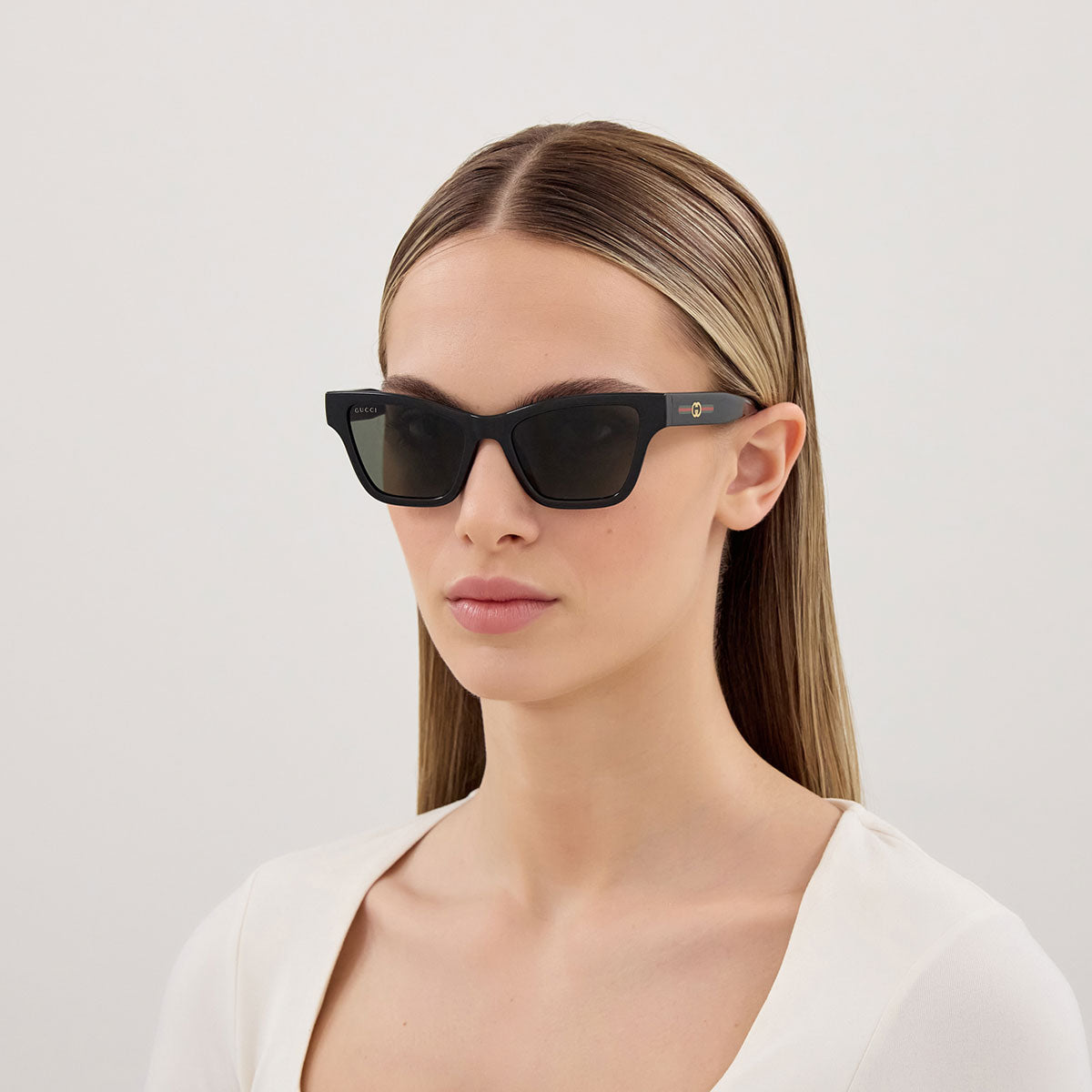 Modello carry-over che reinterpreta l’eleganza senza tempo con una raffinata evoluzione del classico dettaglio Web sulle aste. La montatura presenta una forma cat-eye stretta, dal carattere deciso e iperfemminile, perfetta per uno stile sofisticato e moderno. Il design è impreziosito dal logo Interlocking G, emblema iconico della Maison Gucci. La palette cromatica commerciale e femminile, abbinata a lenti tinta unita, completa un accessorio pensato per chi ama distinguersi con discrezione ed eleganza.