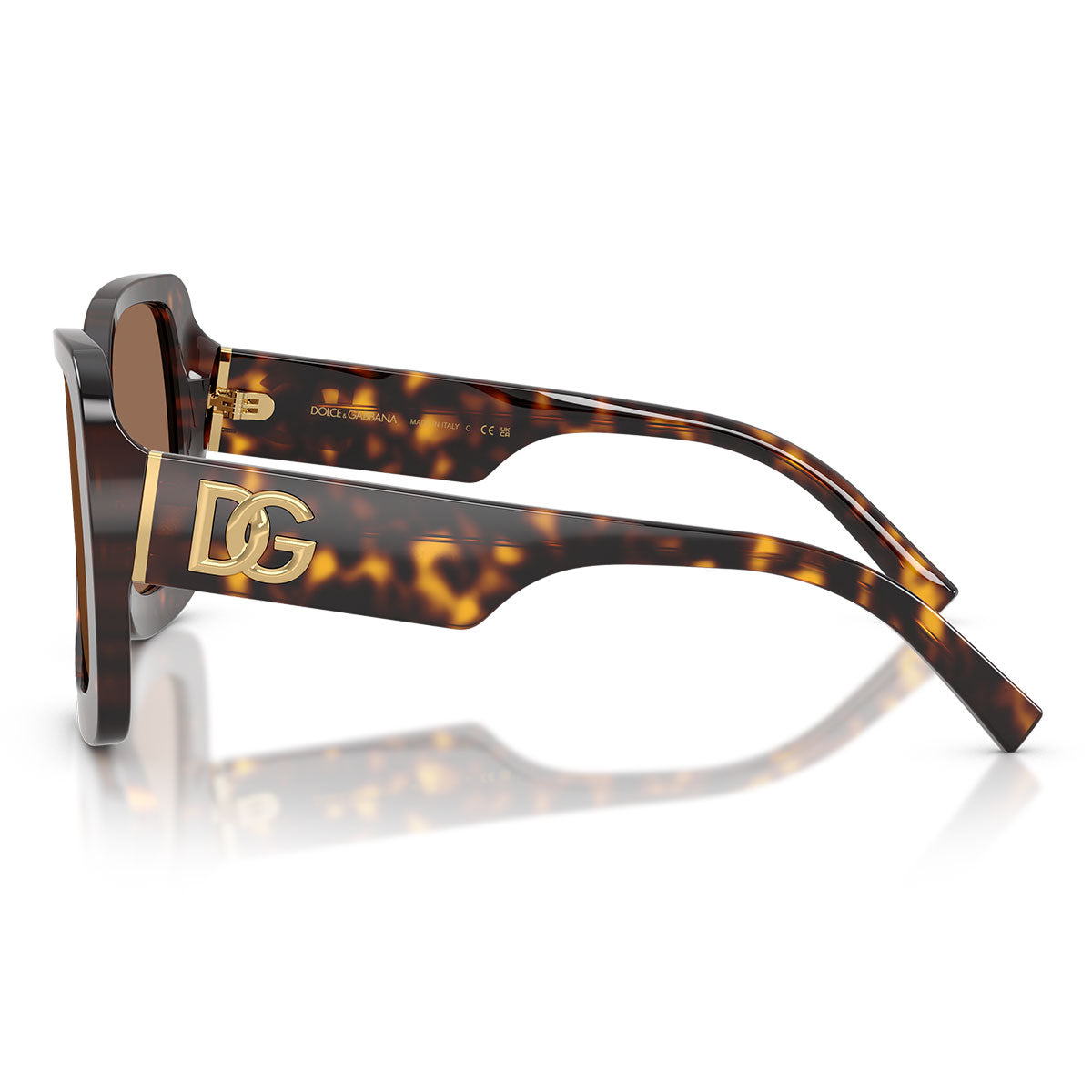 Realizzati in acetato audace, questi occhiali da sole presentano una forma squadrata dal gusto vintage, reinterpretata con l’inconfondibile eleganza Dolce & Gabbana. Un dettaglio in metallo arricchisce la cerniera, mentre le aste sfoggiano l’iconico logo DG incrociato e un inserto in metallo dorato, simbolo di lusso e raffinatezza.