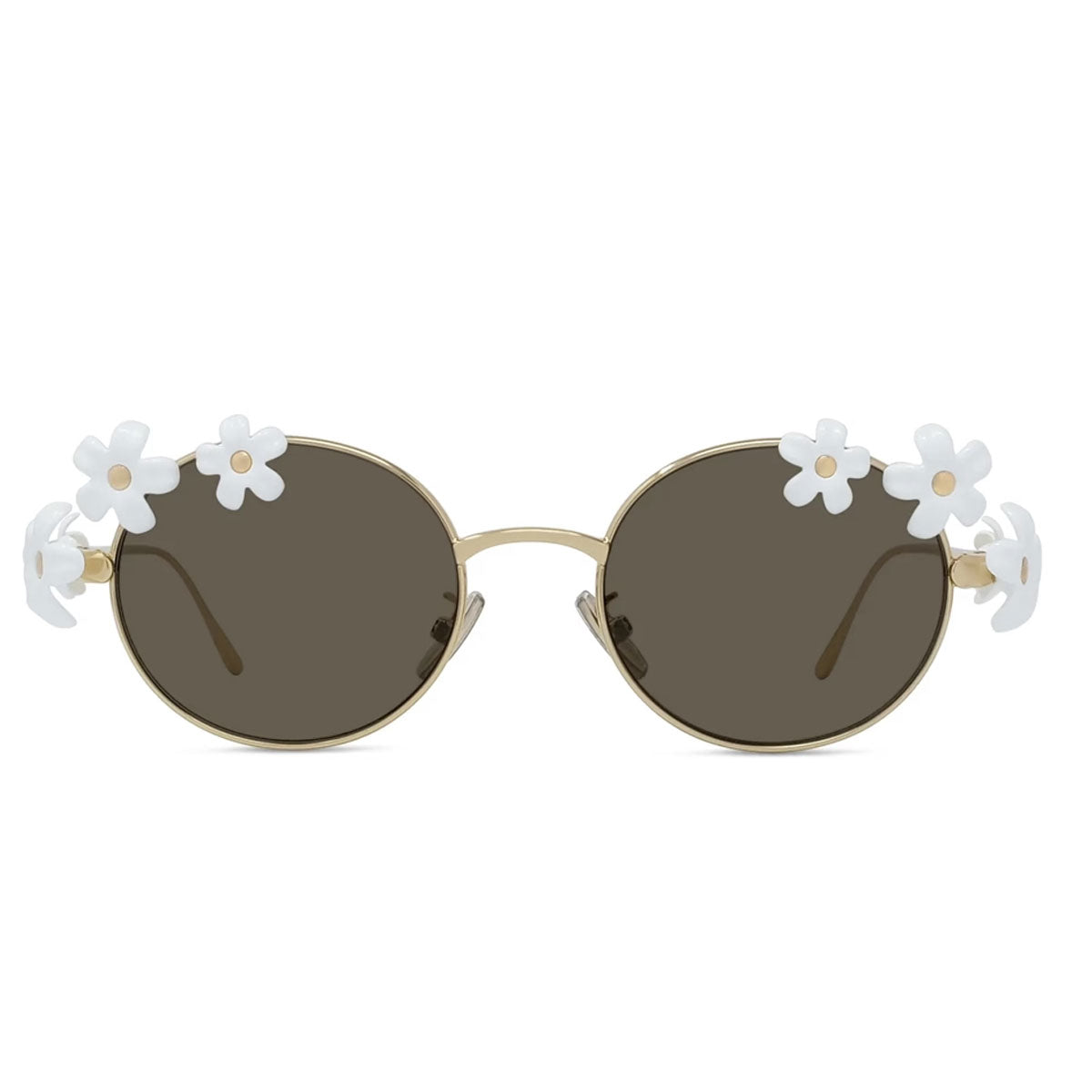 Esprimi tutta la tua femminilità con i nuovi occhiali da sole ovali Loewe della collezione Summer 2025, un modello che unisce eleganza romantica e raffinatezza artigianale. La montatura in metallo full rim presenta una forma ovale dal fascino intramontabile, impreziosita da fiori colorati in rilievo sulla parte superiore, dettaglio che conferisce un tocco unico e sofisticato.