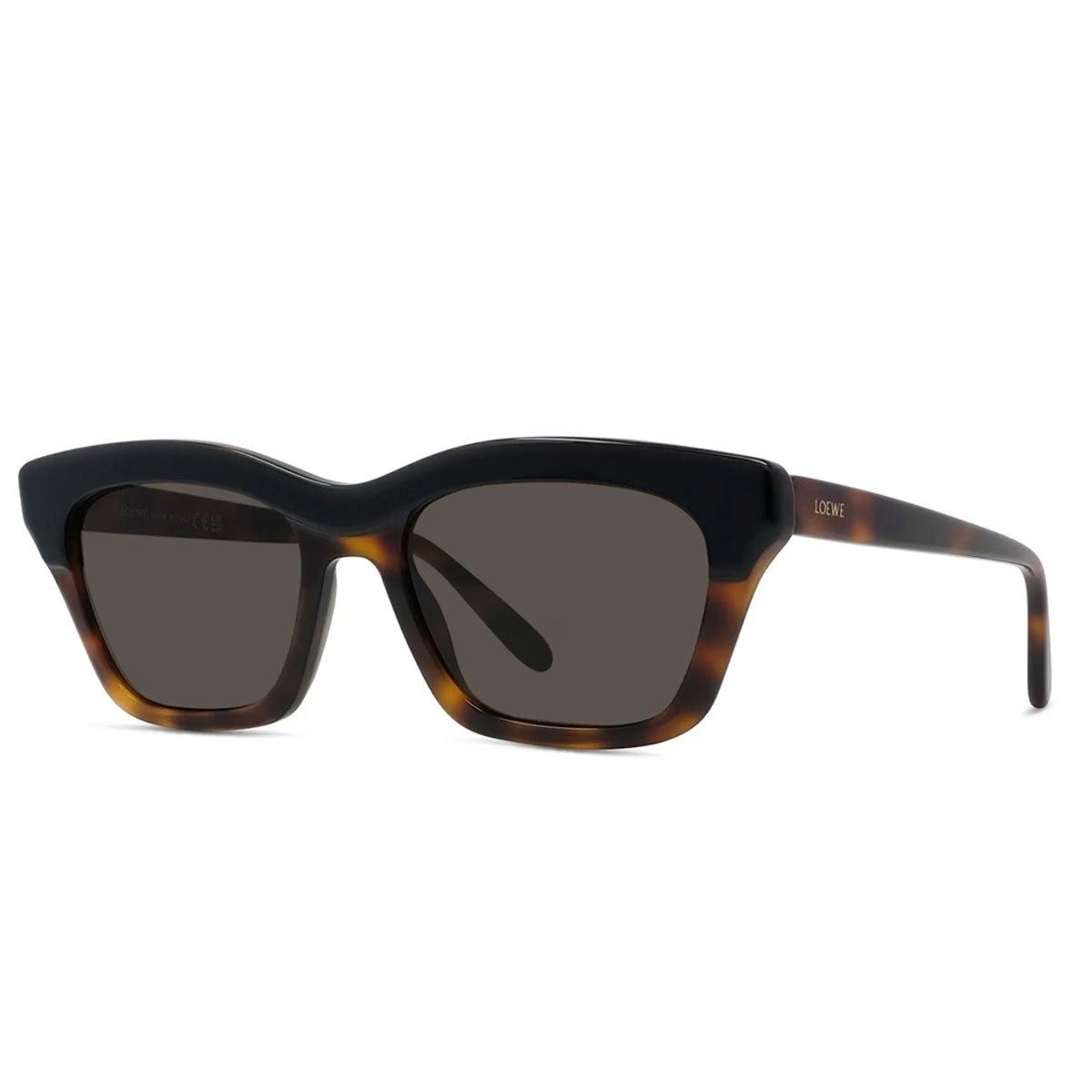 Le aste in acetato, dal profilo sottile e di dimensioni ridotte, sono impreziosite dal logo Loewe con base laccata su entrambe, elemento distintivo che sottolinea l’eleganza discreta del brand.
