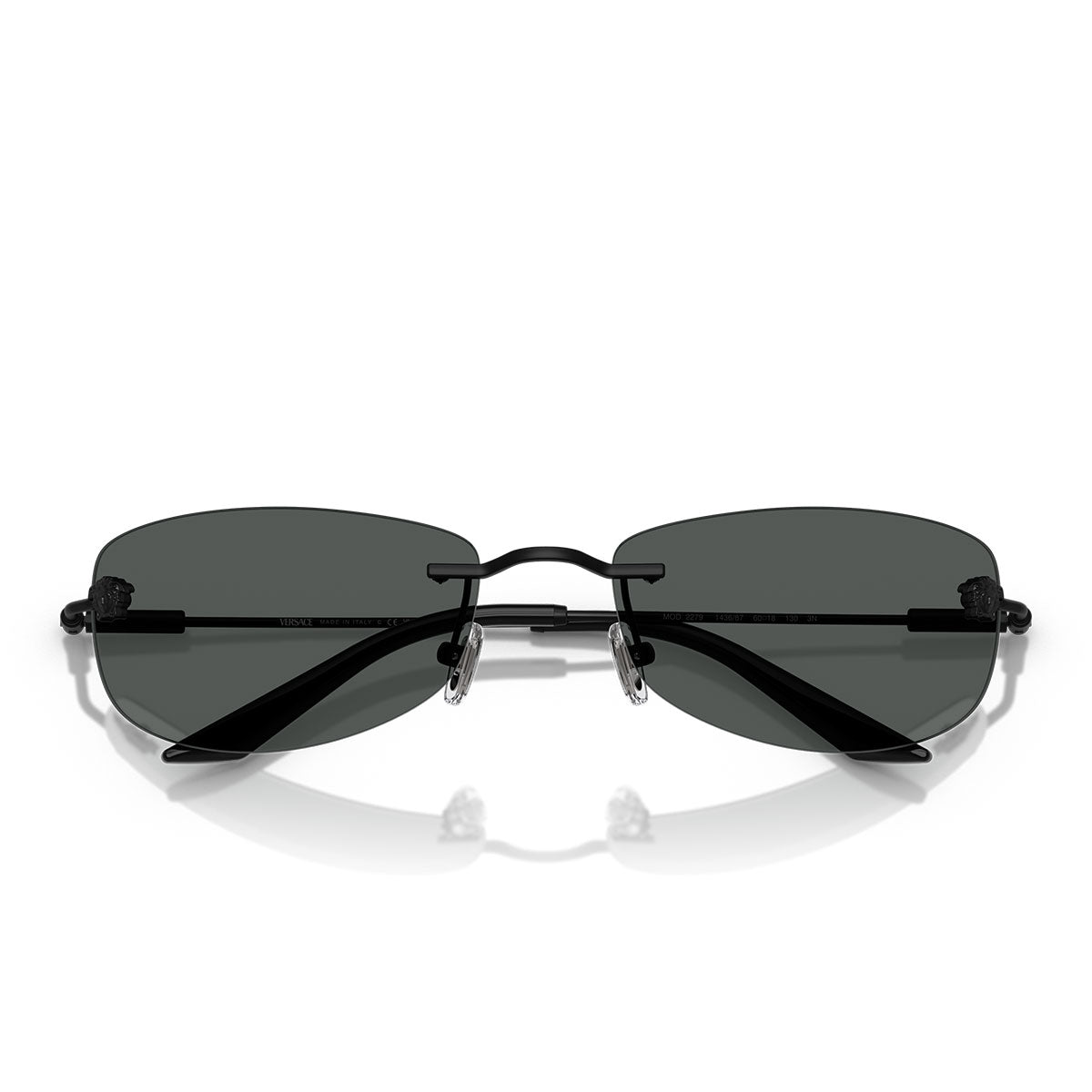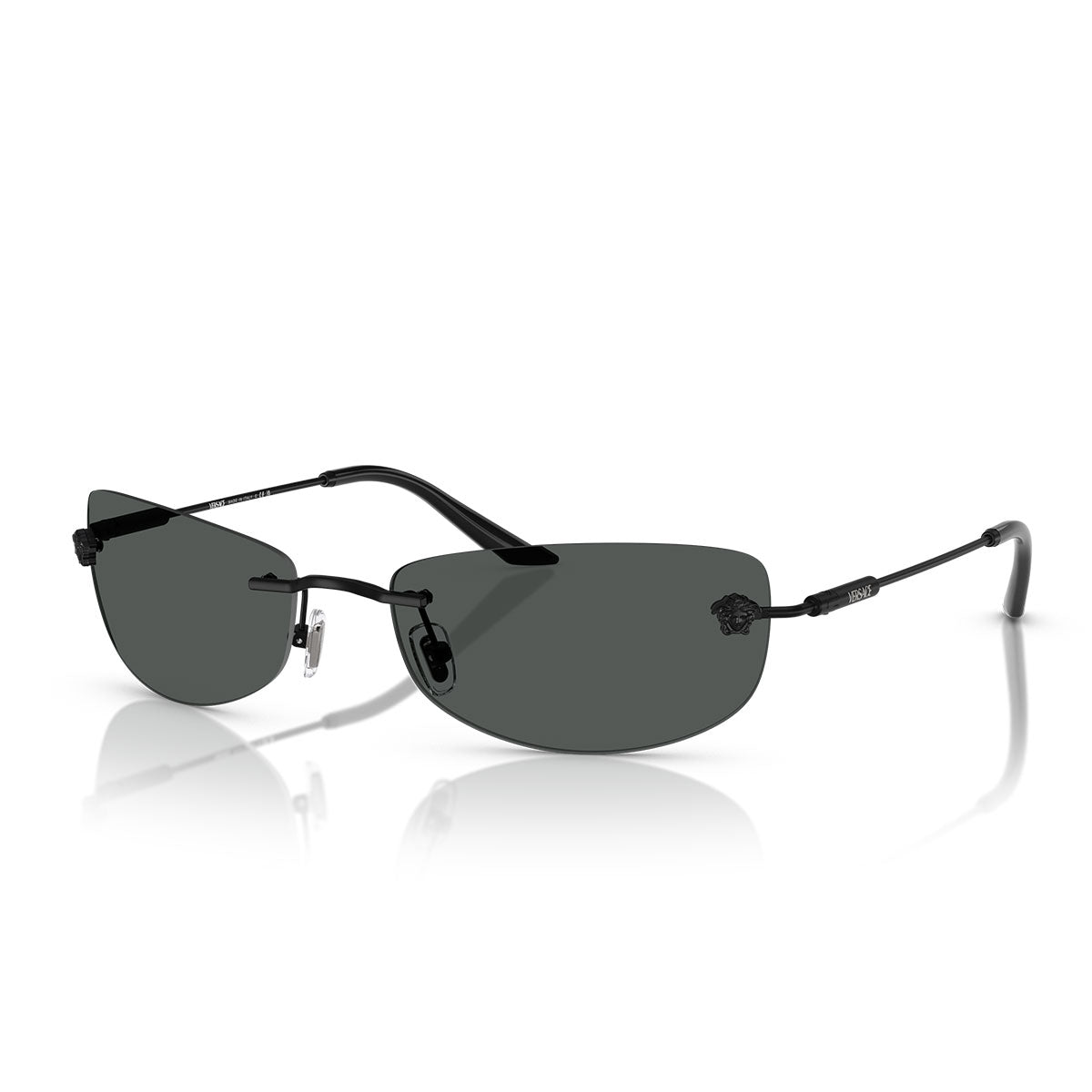Il frontale è impreziosito dall’iconico decoro Medusa in metallo, simbolo intramontabile di lusso e potere. Le aste sottili presentano una placca cilindrica incisa al laser con il logo Versace, per un tocco finale distintivo e raffinato.