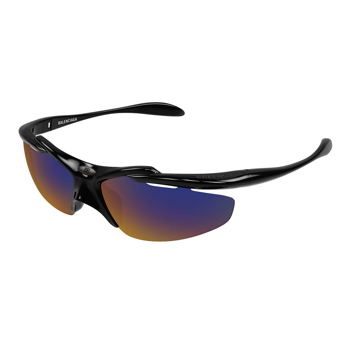 Sportliche und dynamische Brille, vollständig gespritzt mit schwebenden Gläsern der Basis acht, inspiriert von der Welt der Zweiräder und Rennen. Das Modell wird durch die charakteristische ergonomische Balenciaga-Nasenpartie aufgewertet, die entwickelt wurde, um Komfort und Stabilität auch bei intensiver Nutzung zu gewährleisten.