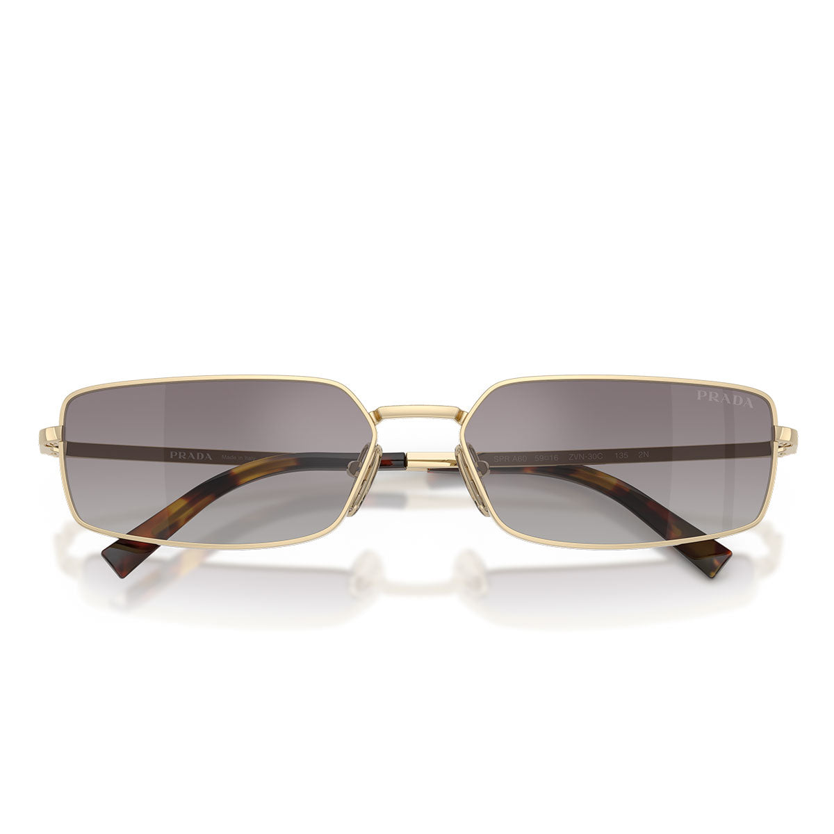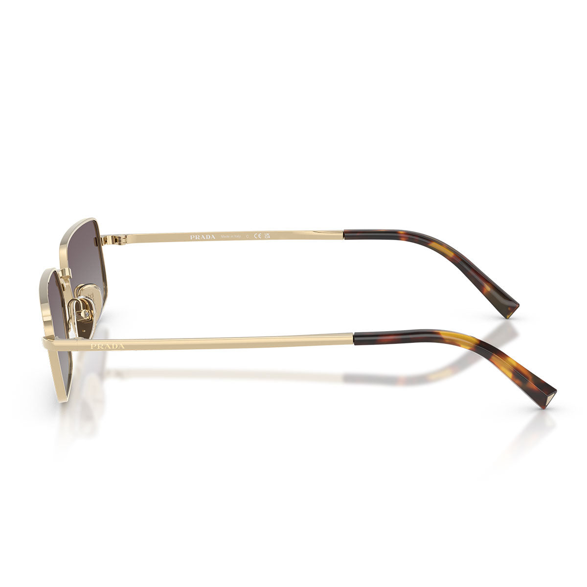 Die Prada PRA60S Sonnenbrille verkörpert die perfekte Balance zwischen zeitgenössischer Eleganz und ikonischem Stil. Dieses rechteckige Metallmodell besticht durch sein neues Bügeldesign, das speziell für die Prada Signature- Linien entwickelt wurde. Die Acetat-Enden sind mit einem kleinen Metalldreieck, dem unverwechselbaren Symbol der Marke, verziert. Der dezent eingravierte Logo-Schriftzug verleiht dem Modell einen raffinierten Touch. Die flachen Gläser sind in verschiedenen kräftigen Farben erhältlich, darunter Messing mit violetten Gläsern und Gold mit orangefarbenen Gläsern – für einen anspruchsvollen und modernen Look.