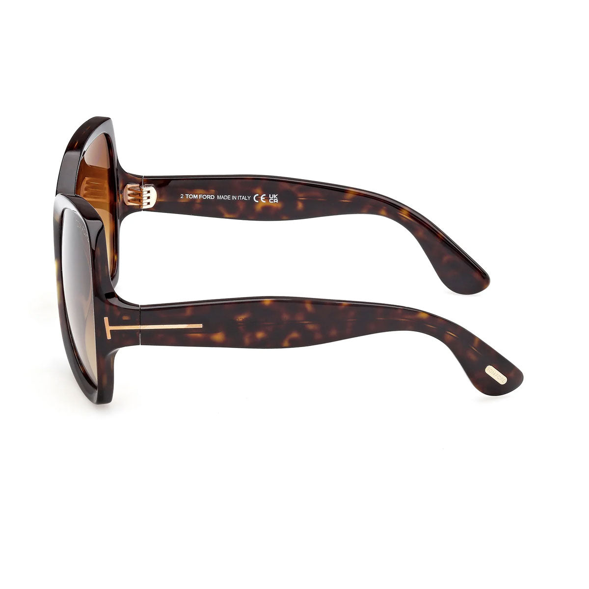 Die braunen Verlaufsgläser bieten optimalen UV-Schutz und verleihen dem Look einen Hauch von Geheimnis und Chic. Das berühmte „T“-Logo auf den Bügeln ist die unverwechselbare Handschrift von Tom Ford und steht für Luxus und Liebe zum Detail.