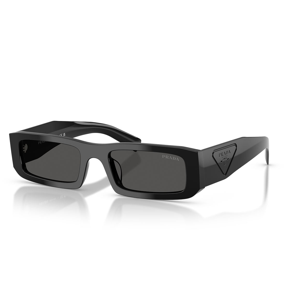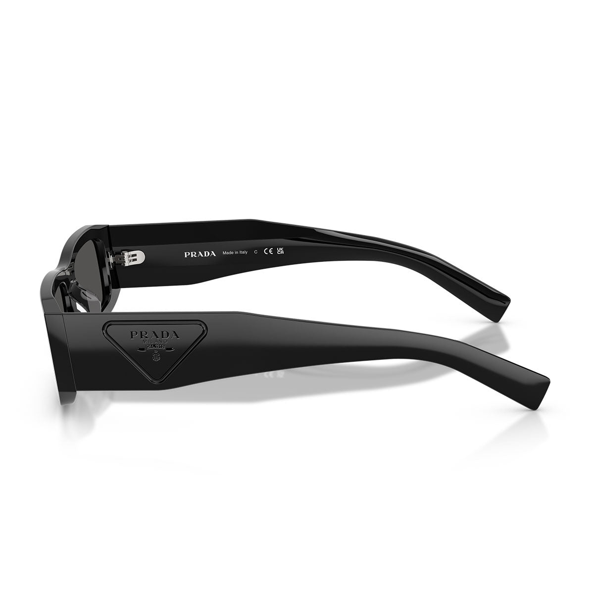 Die Bügel sind mit dem ikonischen dreieckigen Prada-Logo veredelt, präzise eingraviert und perfekt auf die Farbe des hochdichten Acetats abgestimmt, für einen raffinierten und wiedererkennbaren Look.