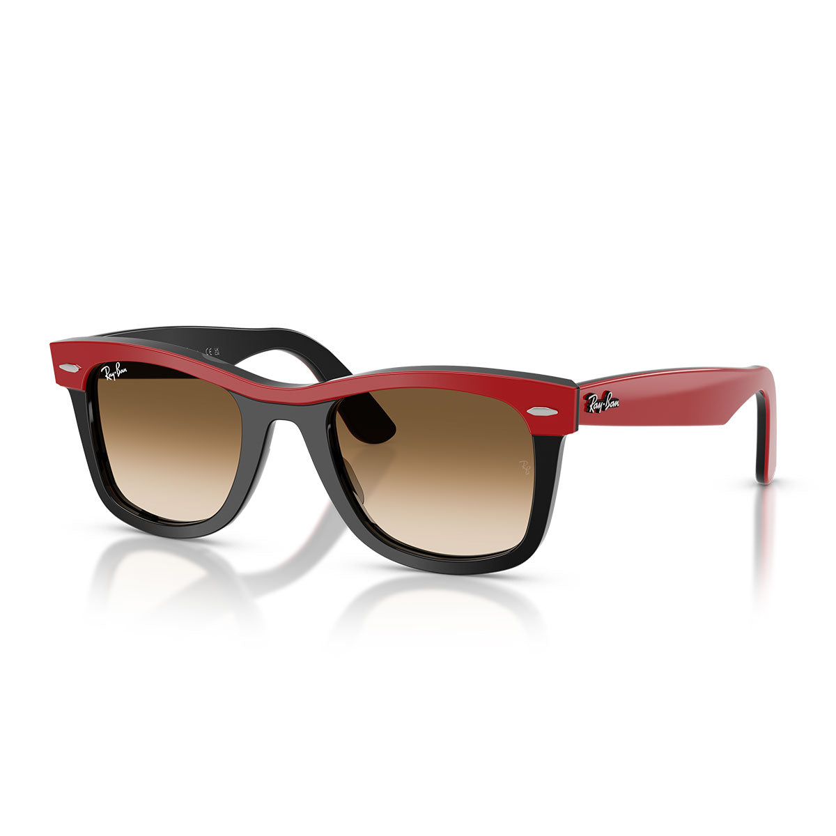 Ray-Ban RB2240 955/51 Wayfarer Sonnenbrille Rot auf Schwarz/Braun Farbverlauf Transparent Unisex