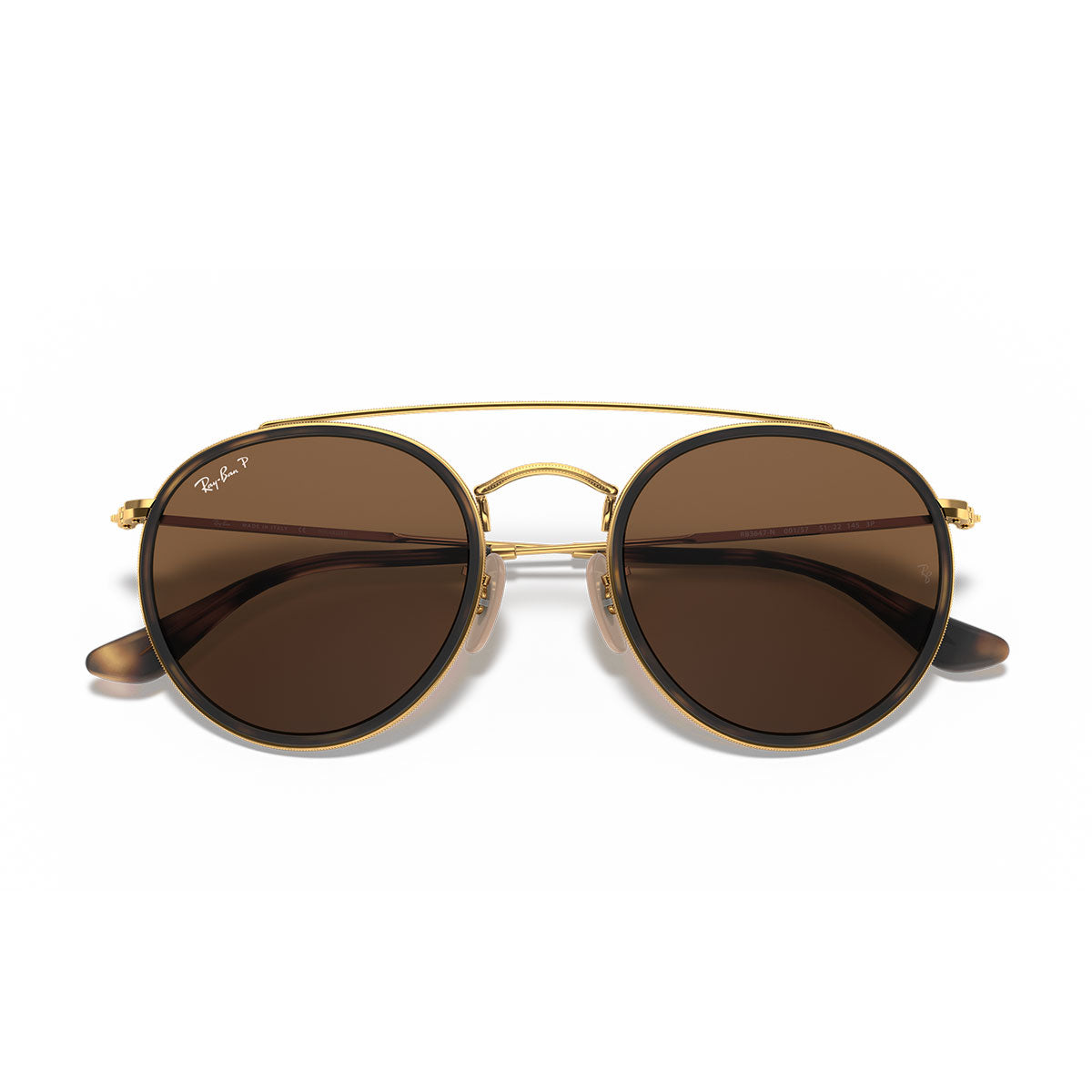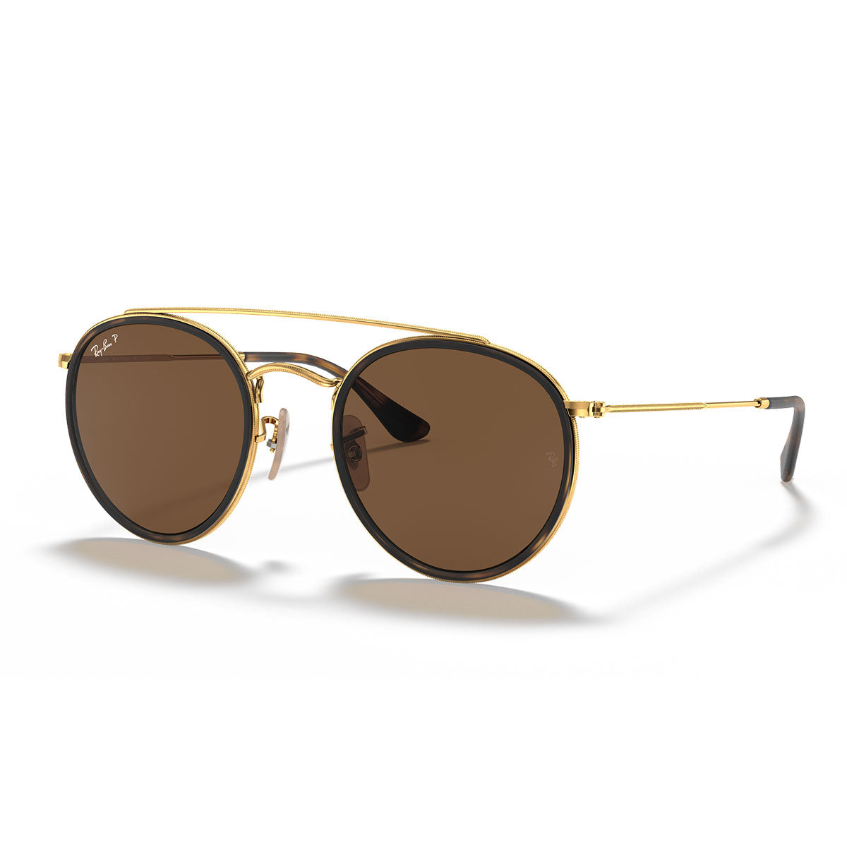 Ray-Ban Sonnenbrille RB3647N 001/57 Runde Doppelbrücke Gold Arista/Braun B-15 Unisex Polarisiert