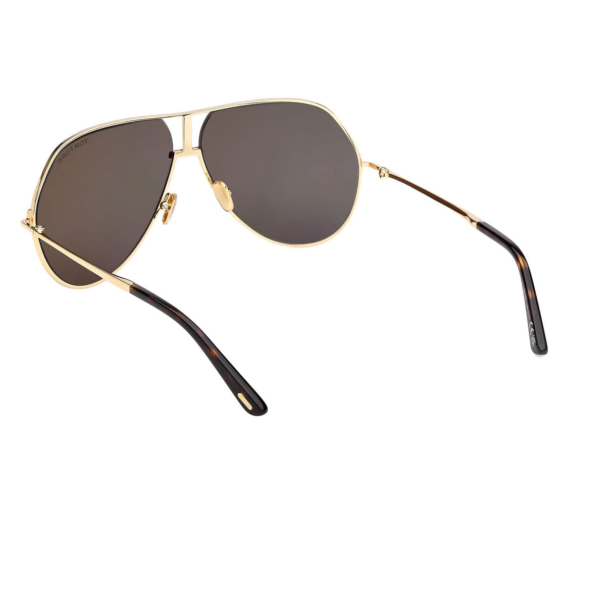 Die goldfarbenen Gläser runden den Look mit einem auffälligen Spiegeleffekt ab und bieten gleichzeitig UV-Schutz und klare Sicht. Das schlanke und dennoch raffinierte Design wird durch das markante „T“-Logo an den Bügeln verziert, ein unverwechselbares Markenzeichen von Tom Ford .