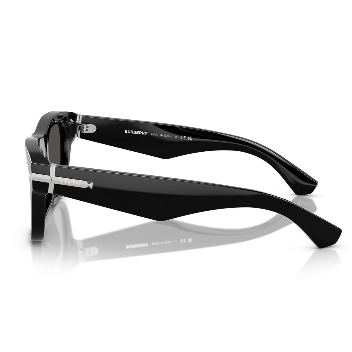 The BE4438U sunglasses by Burberry are a delicate style statement, combining bold shapes and refined details. The square frame in recycled acetate is enriched with gold or silver metal inserts on the front, temples, and hinges, featuring a Burberry logo plaque with an essential yet distinctive design.