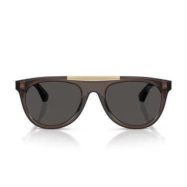 Refined and characterful, the Burberry BE4452U sunglasses reinterpret the classic pilot shape with modern elegance and distinctive details. Made from high-quality nylon, they feature a new golden metal central bar that harmoniously matches the engraved metal plaques on the acetate temples.
