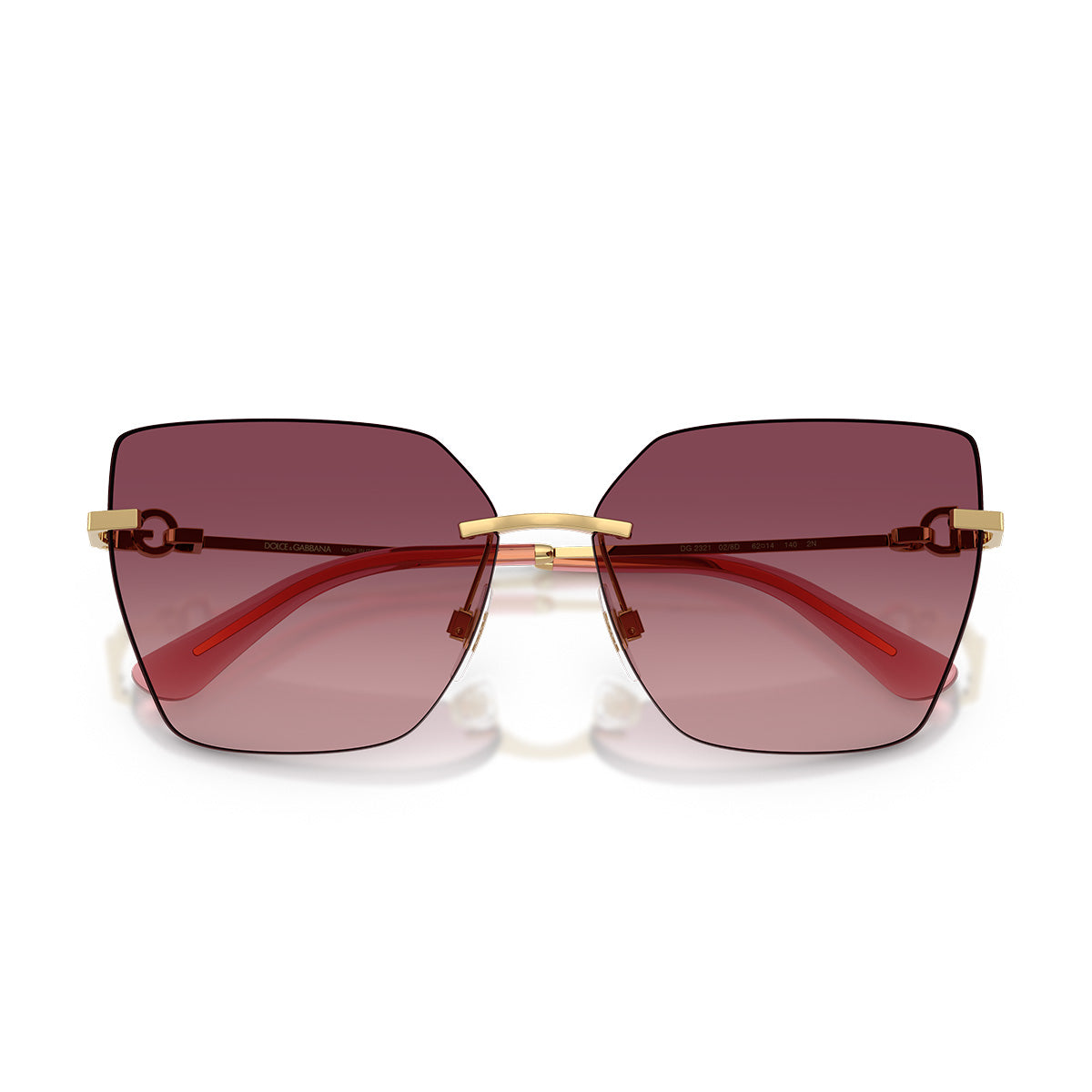 The Dolce & Gabbana DG2321 sunglasses reinterpret feminine charm with an oversized cat-eye design featuring rimless lenses in stunning gradient shades. The elegance of the lines combines with the lightness of the frame, creating a refined accessory with great visual impact.