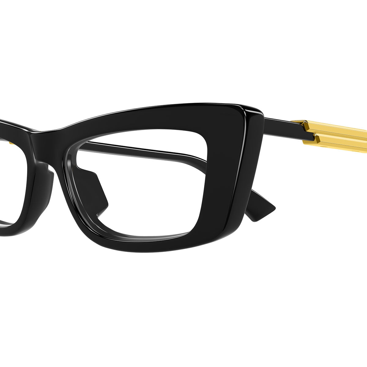 The temples create a refined three-dimensional effect: they appear very thin from the front, but are substantial when viewed from above, giving volume, structure and a marked architectural presence. The design’s protagonist is the iconic Ribbon detail, mechanically attached to the temples, which gives the glasses prestige, solidity and a strong stylistic identity, the unmistakable signature of Bottega Veneta.