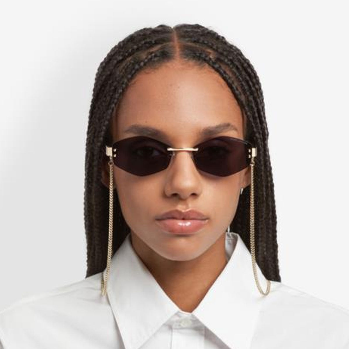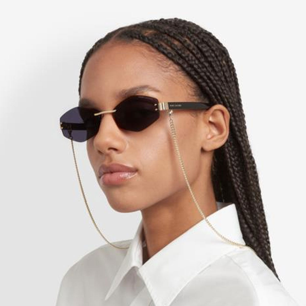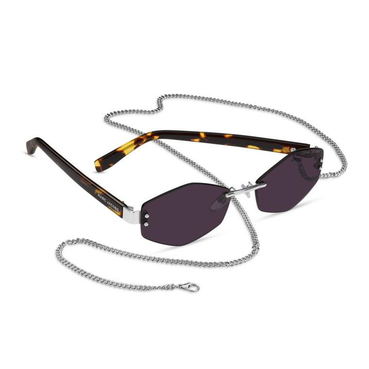 Sophisticated evolution of an icon, the women's sunglasses Marc Jacobs MARC 496/S AIR reinterpret contemporary glamour with a minimalist yet bold design. The rimless metal frame offers lightness and modernity, while the acetate temples with embedded logo add a distinctive touch. A striking detail, the metal chain enhances the model's fashion-forward style. The look is completed by the laser-engraved logo on the lens, for an elegant and recognizable signature, in the true spirit of Marc Jacobs.