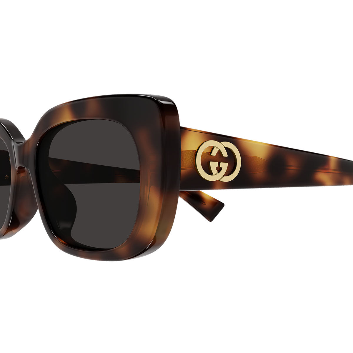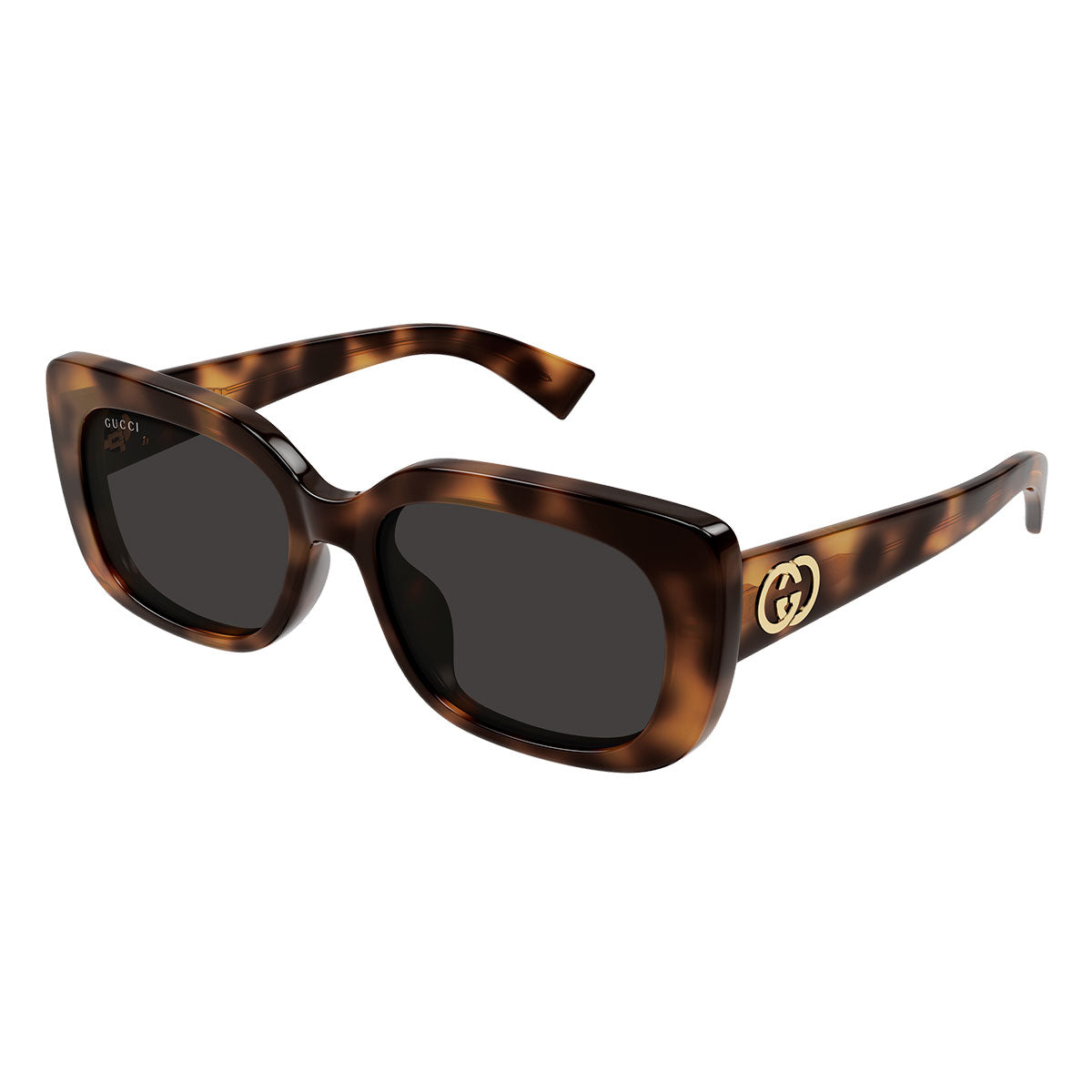 The rectangular acetate frame is enriched by a delicate cat-eye hint, a detail that gives femininity and balance to the structured design. The Interlocking G logo enhances the temples with an iconic and immediately recognizable touch.