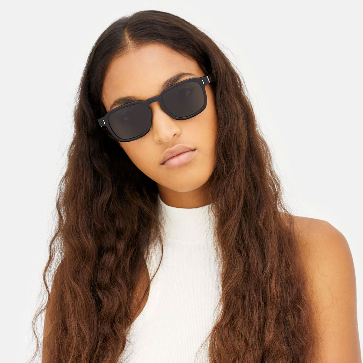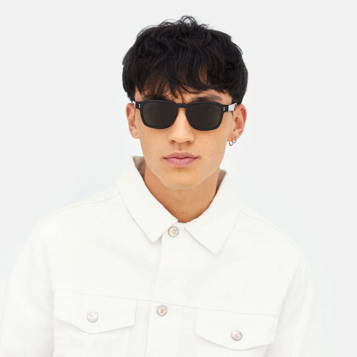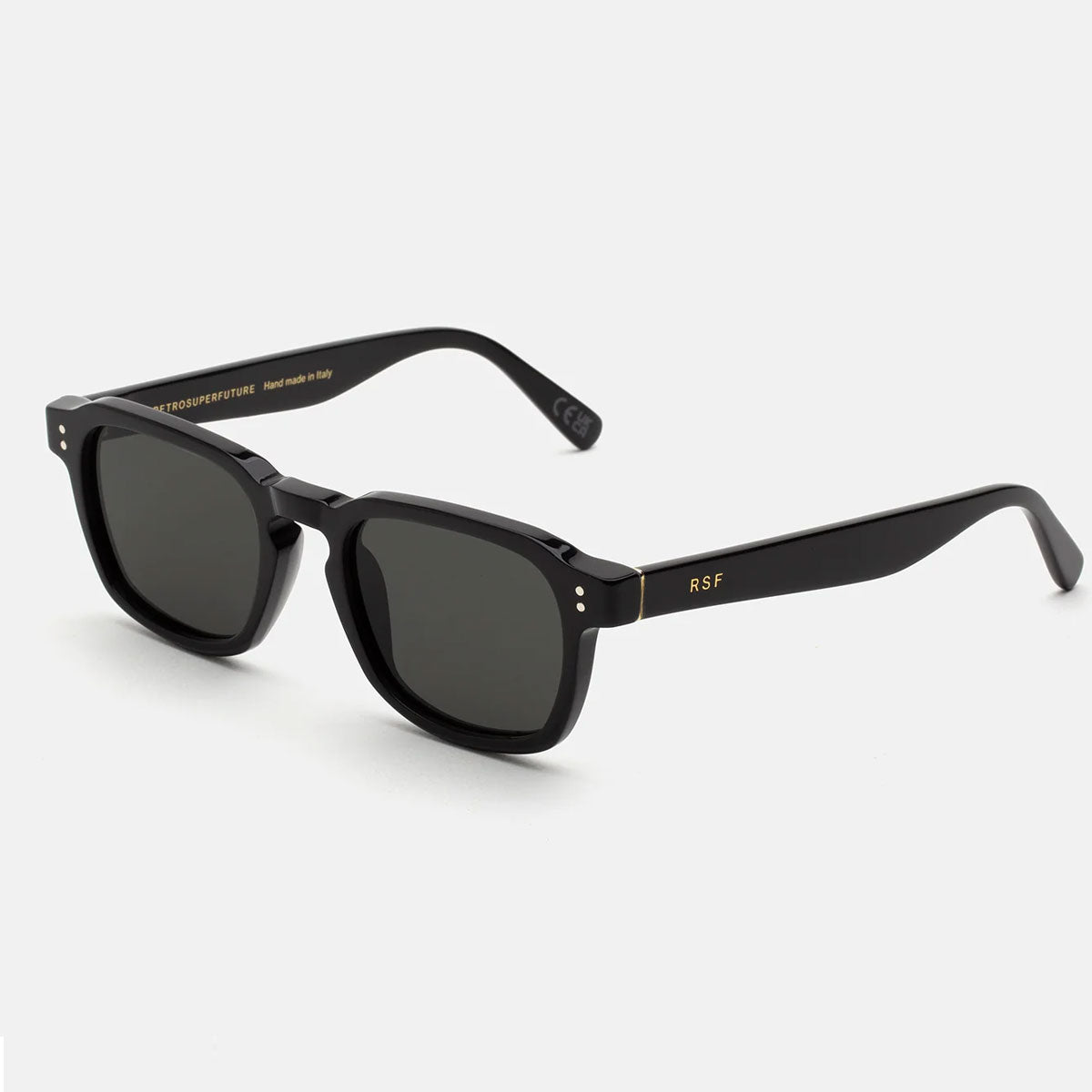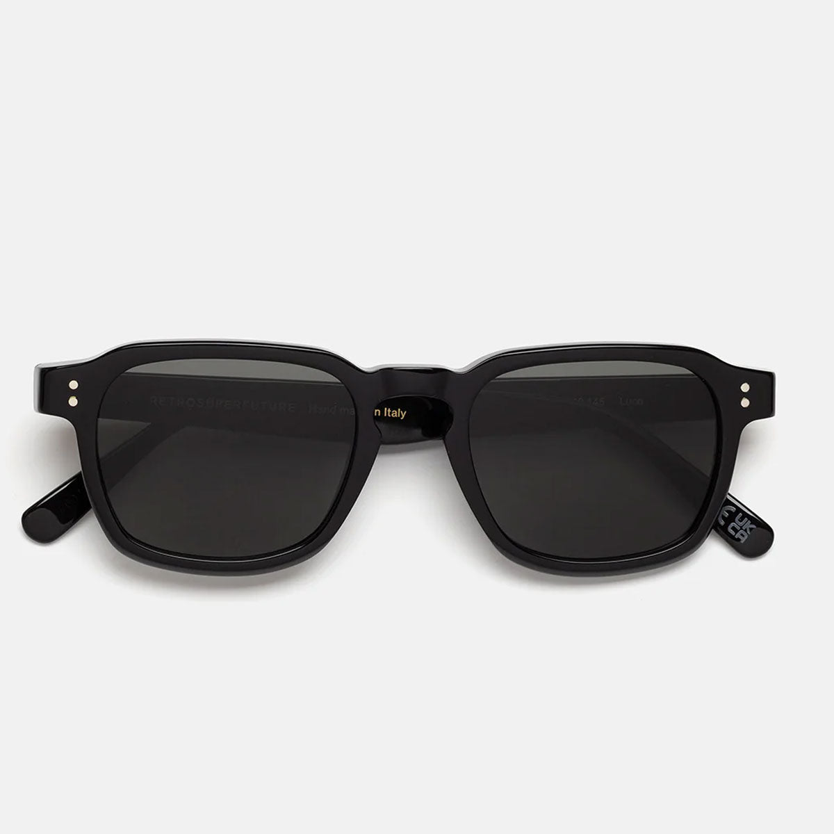 Here are the Luce Black CG0 sunglasses from RETROSUPERFUTURE, an iconic silhouette that harmoniously blends vintage references with a contemporary street aesthetic. The Luce model stands out for its wide horizontal profile, angular temple tips, and elegantly shaped rims, with a sculpted upper line that gives character and personality.
