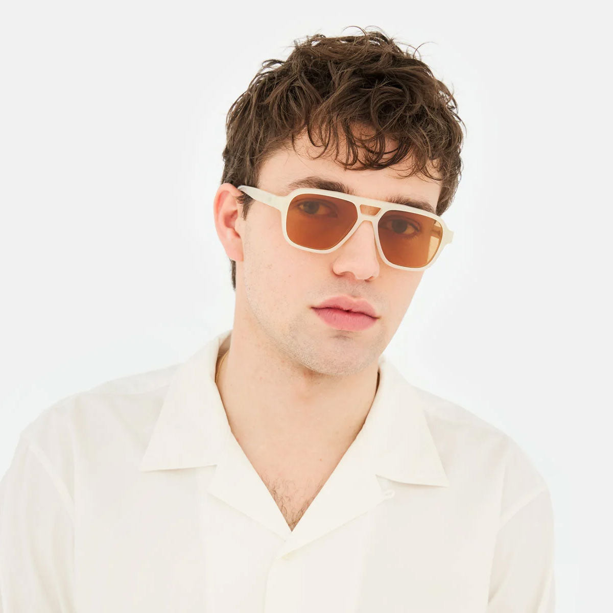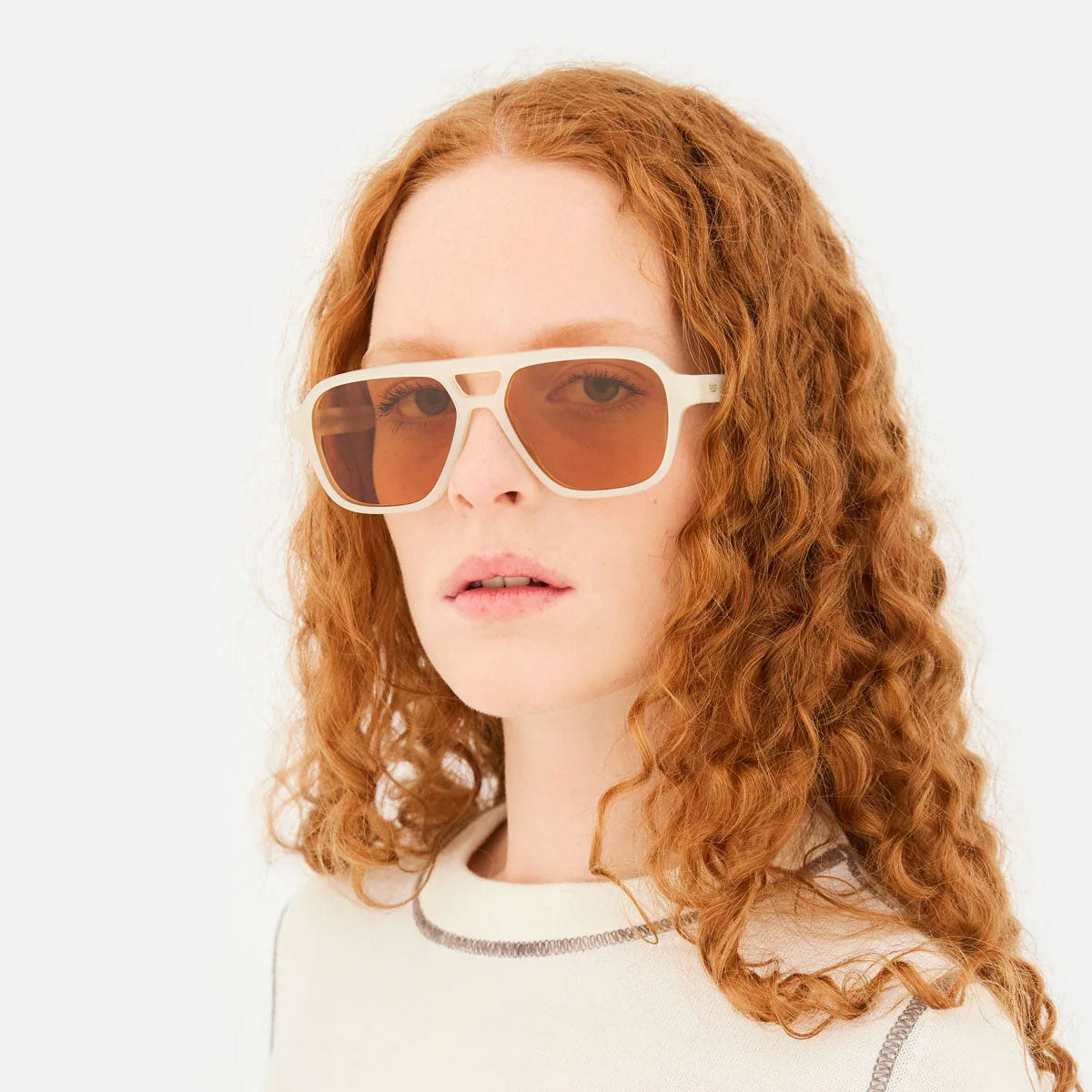 Retro elegance and Italian craftsmanship meet in the Maneval sunglasses by RETROSUPERFUTURE. Made from fine Italian acetate of high quality, in a soft cream tone, these glasses embody style and comfort. The brown lenses, refined and signed by Zeiss, are mounted with a base curve 4 for sharp vision and a distinctive look.
