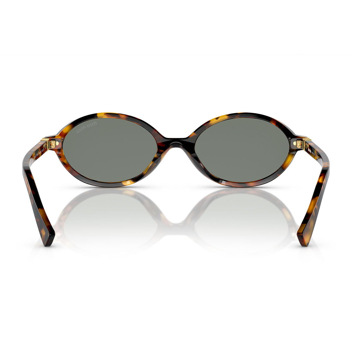 Here are the Miu Miu Woman MU04ZS VAU04M sunglasses! Inspired by the eyeglass models seen on the runway, these sunglasses exude the same minimalist charm that does not go unnoticed. The oval acetate frame is enriched by the vertical Miu Miu logo, while the brightly colored lenses add a bold and sophisticated touch.
