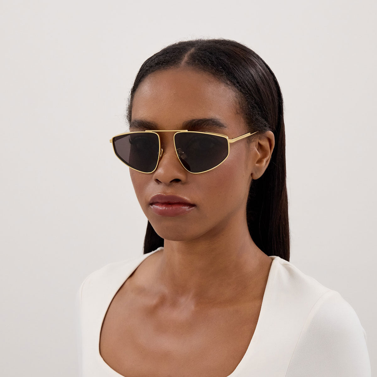 The Bottega Veneta BV1466S express a feminine and refined aesthetic, where architectural design and iconic details merge into an accessory of strong character.