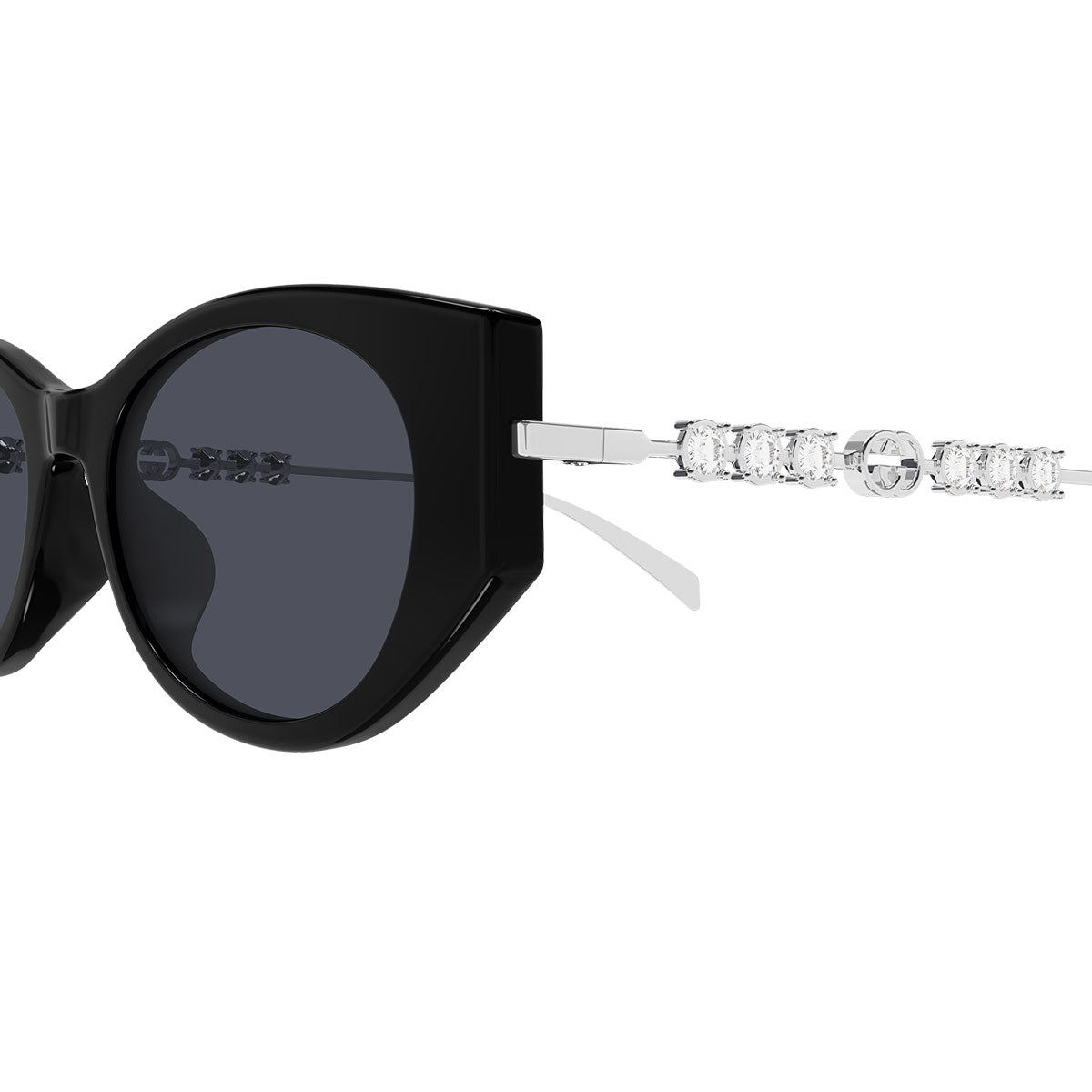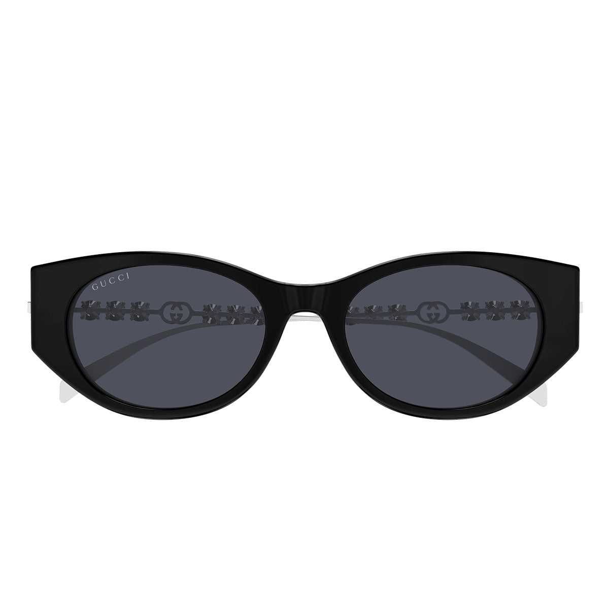 The temples are decorated with six pearls or rhinestone details on each side, depending on the SKU, offering a precious and distinctive touch. All is completed by the iconic Interlocking G logo, a symbol of Gucci tradition, positioned with discretion and elegance.