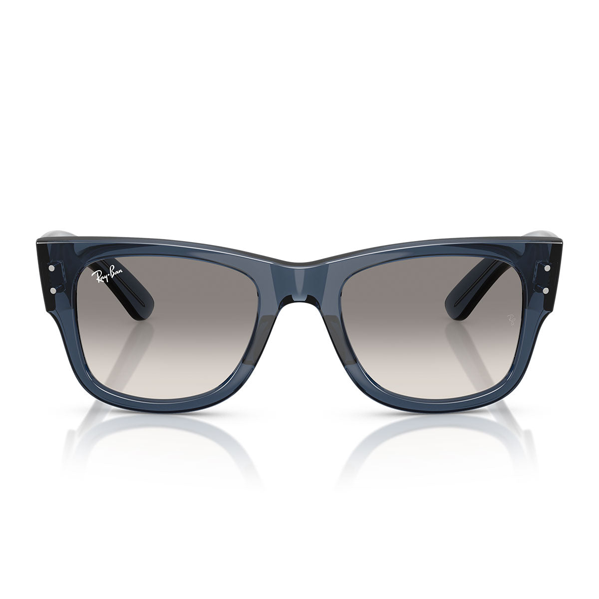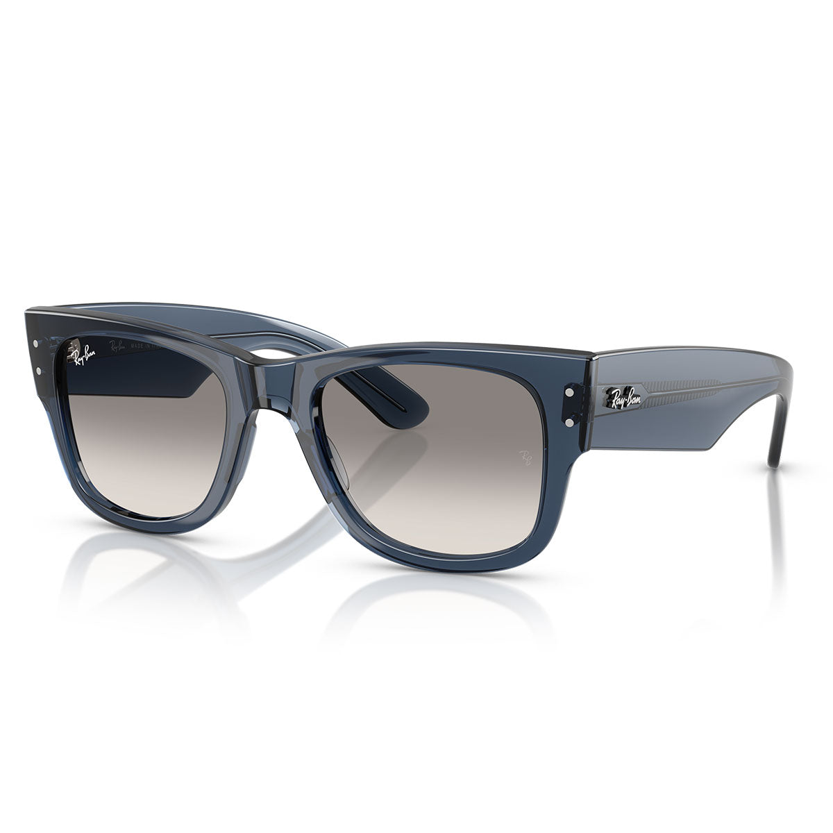 The Ray-Ban Mega Wayfarer RB0840S sunglasses are a bold and modern version of the iconic Wayfarer model, designed for those who love to dare. With a dark transparent blue frame paired with transparent grey gradient lenses, this version features softer shapes, perfect for expressing your individuality with style. The strong and striking design makes these glasses an ideal accessory for those seeking a look that does not go unnoticed. Don’t miss the chance to elevate your style with a pair of unique and fashionable glasses.