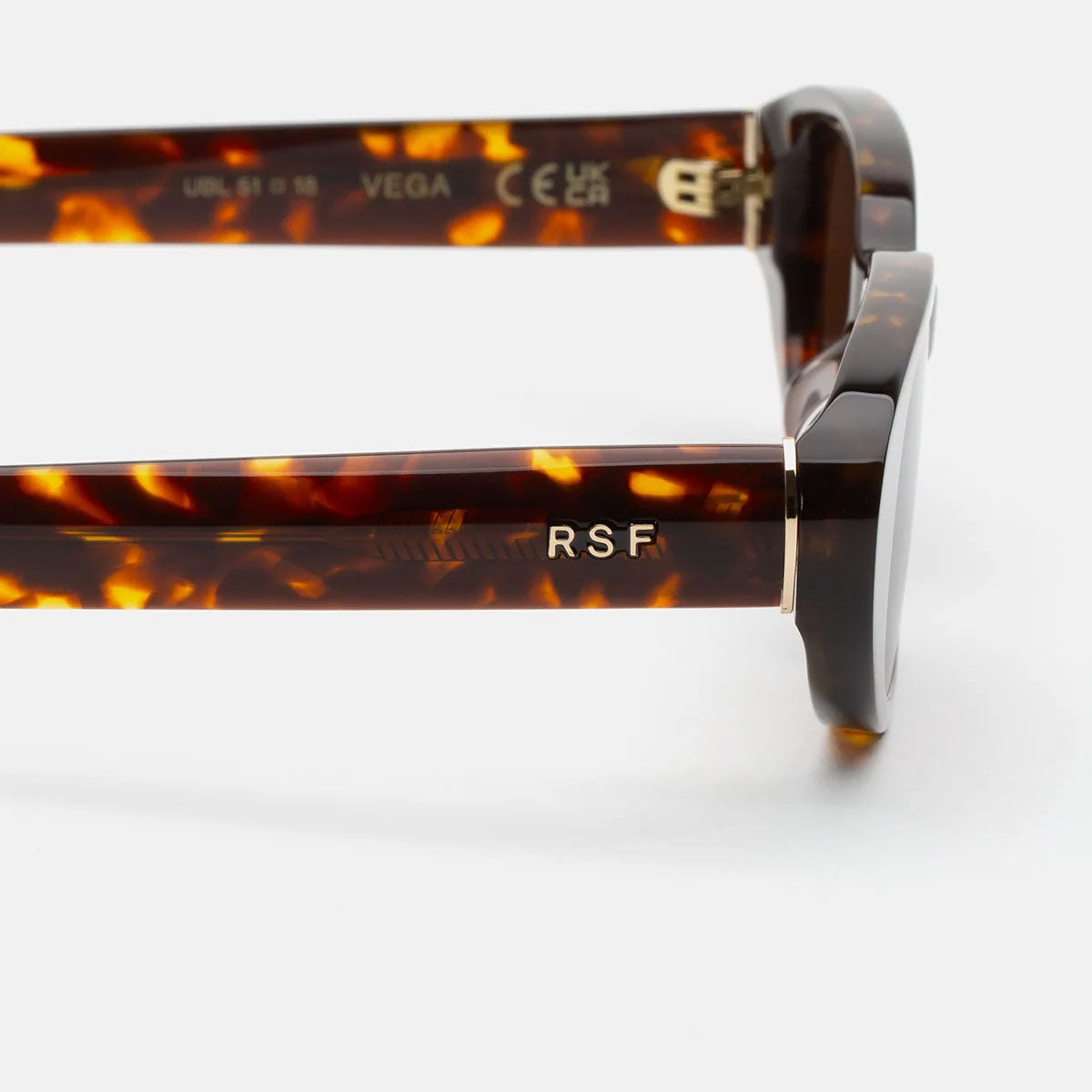 Product information is also printed on the temples. Some examples: model code, color code, size and measurements, collection name, Made in..., CE mark, etc...
