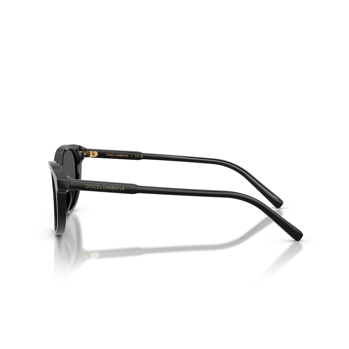 Las varillas delgadas presentan una sección inicial más ancha, embellecida con el logo Dolce & Gabbana extendido en oro bajo resina, un detalle distintivo que remite a la estética icónica de la maison. Este elemento añade un toque lujoso y hace que el modelo sea inmediatamente reconocible.