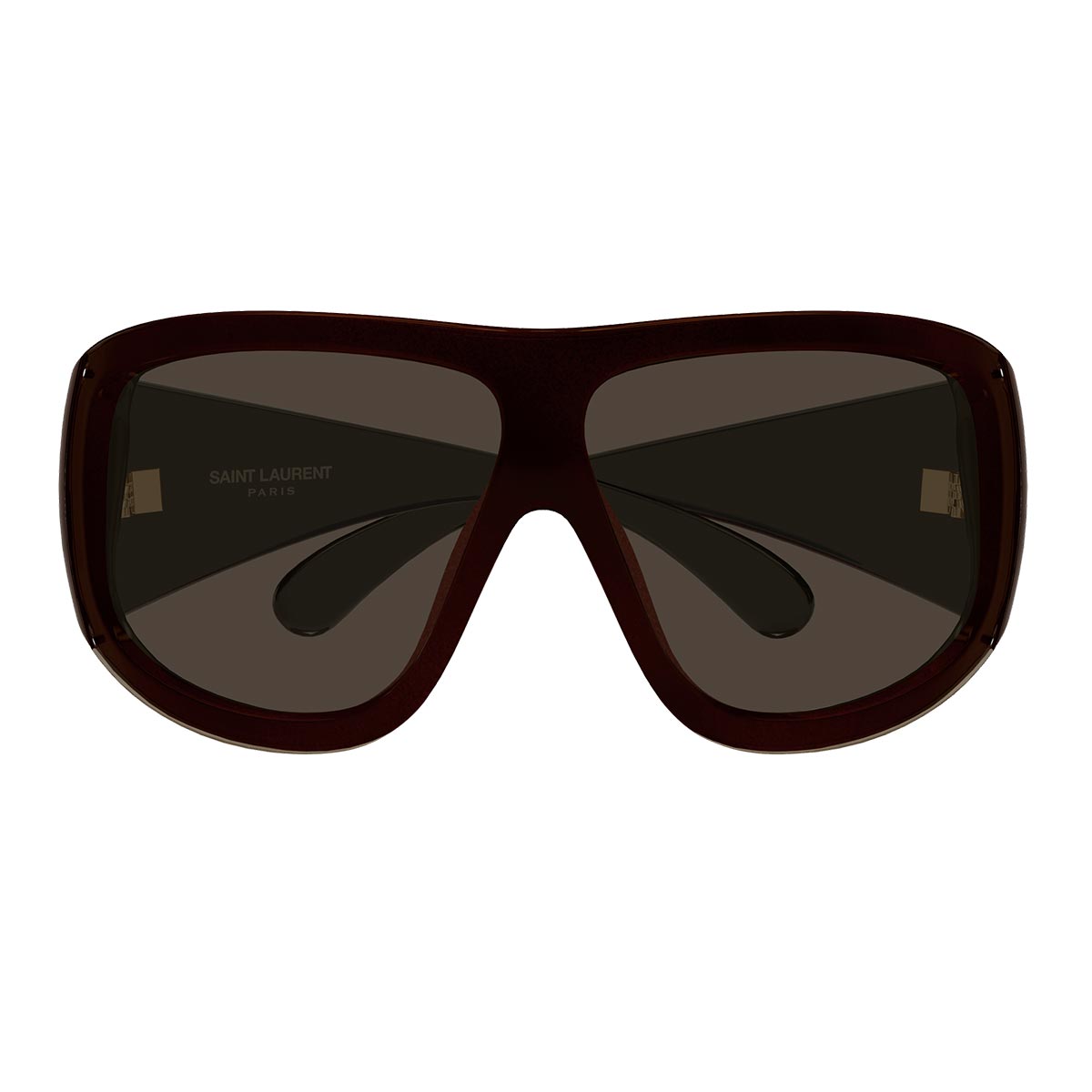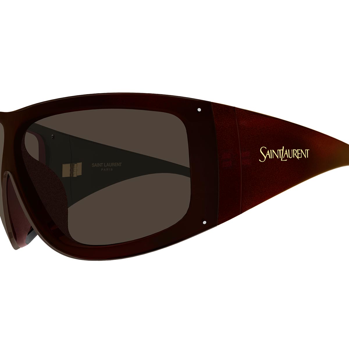 Las varillas están adornadas con el logo Saint Laurent, un detalle icónico que añade un toque de lujo discreto y reconocimiento al modelo.