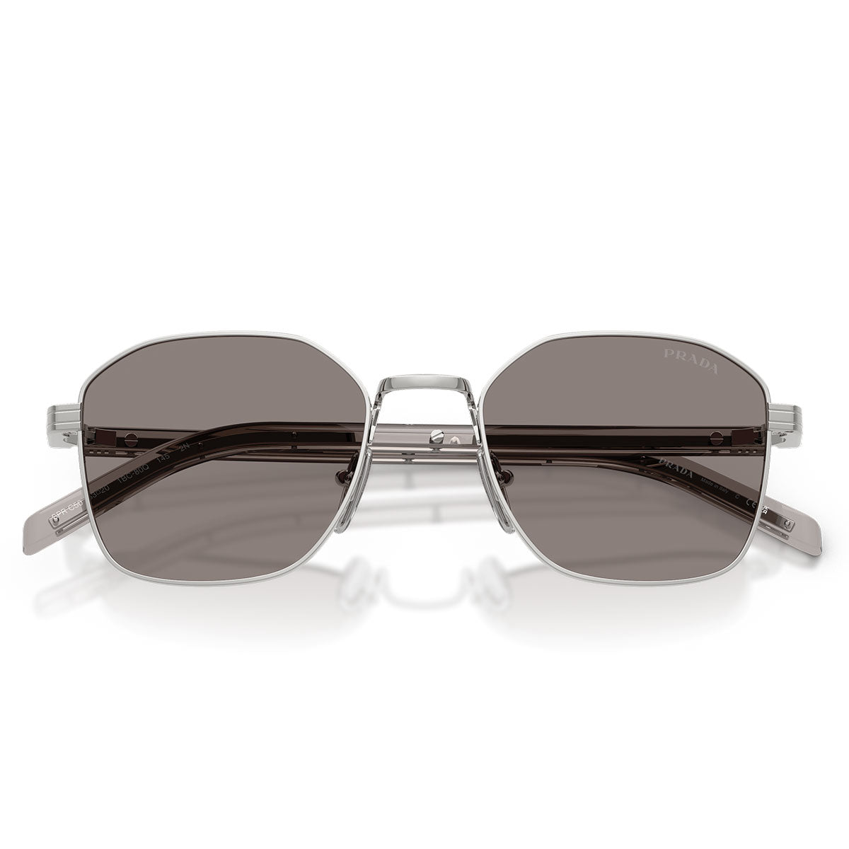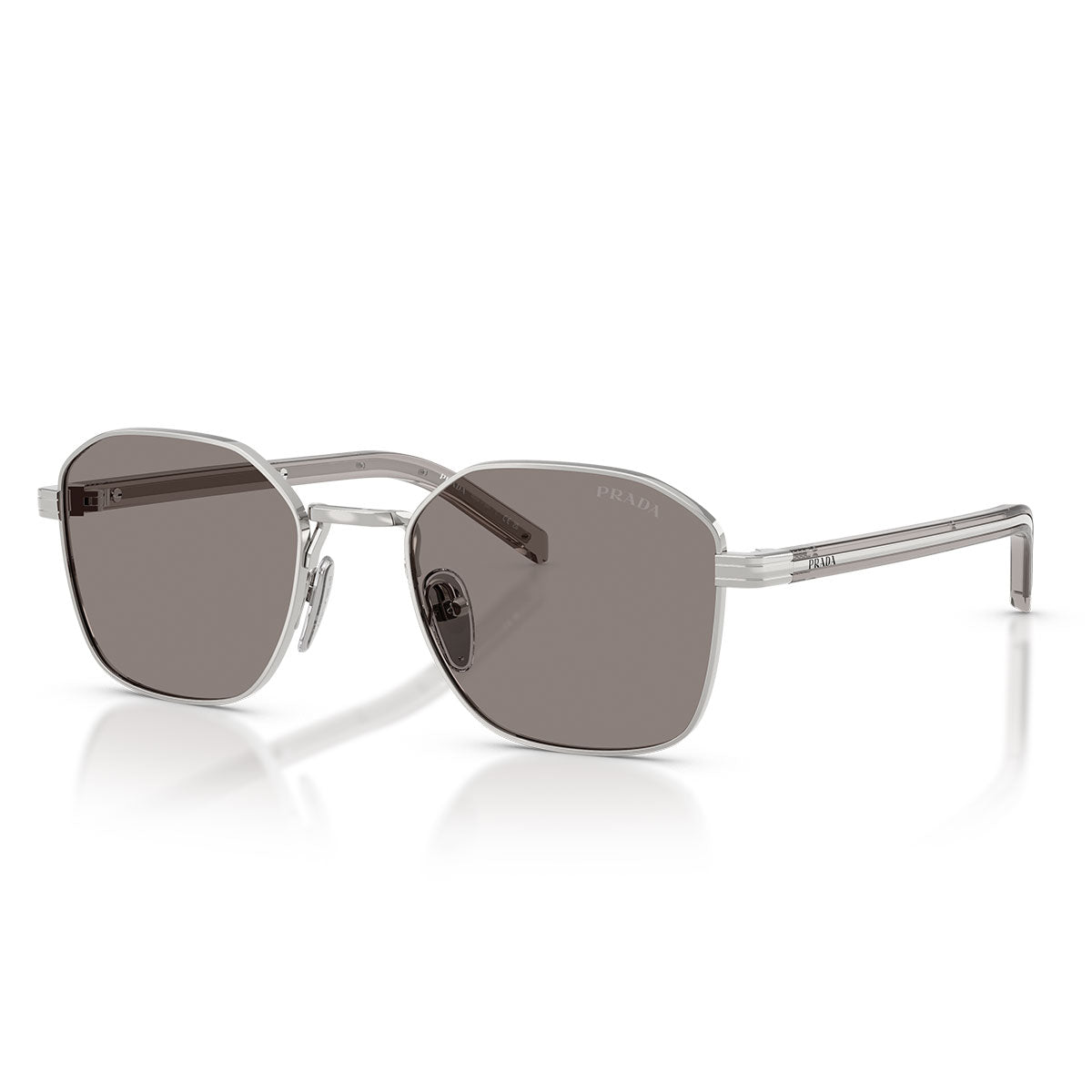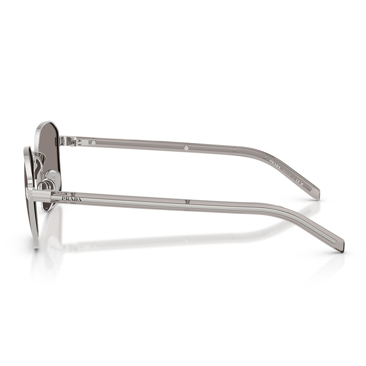 Disponibles en finitions métalliques raffinées — argent, or et canon de fusil — associées à des acétates soigneusement sélectionnés, les PRC50S expriment l'équilibre parfait entre innovation formelle et identité stylistique signée Prada.