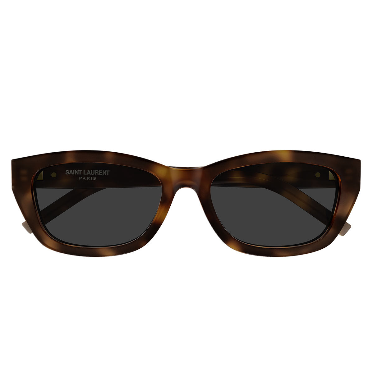 Monture de soleil féminine au style sophistiqué et moderne, caractérisée par une forme étroite avec une élégante touche cat-eye. Réalisée entièrement en acétate de haute qualité, elle offre un design compact et audacieux, parfait pour mettre en valeur les traits du visage. La monture est embellie par une charnière monogramme moyenne sur les deux côtés, détail iconique rappelant l’élégance intemporelle de la Maison Saint Laurent. Un accessoire de luxe pensé pour ceux qui aiment se distinguer avec style.