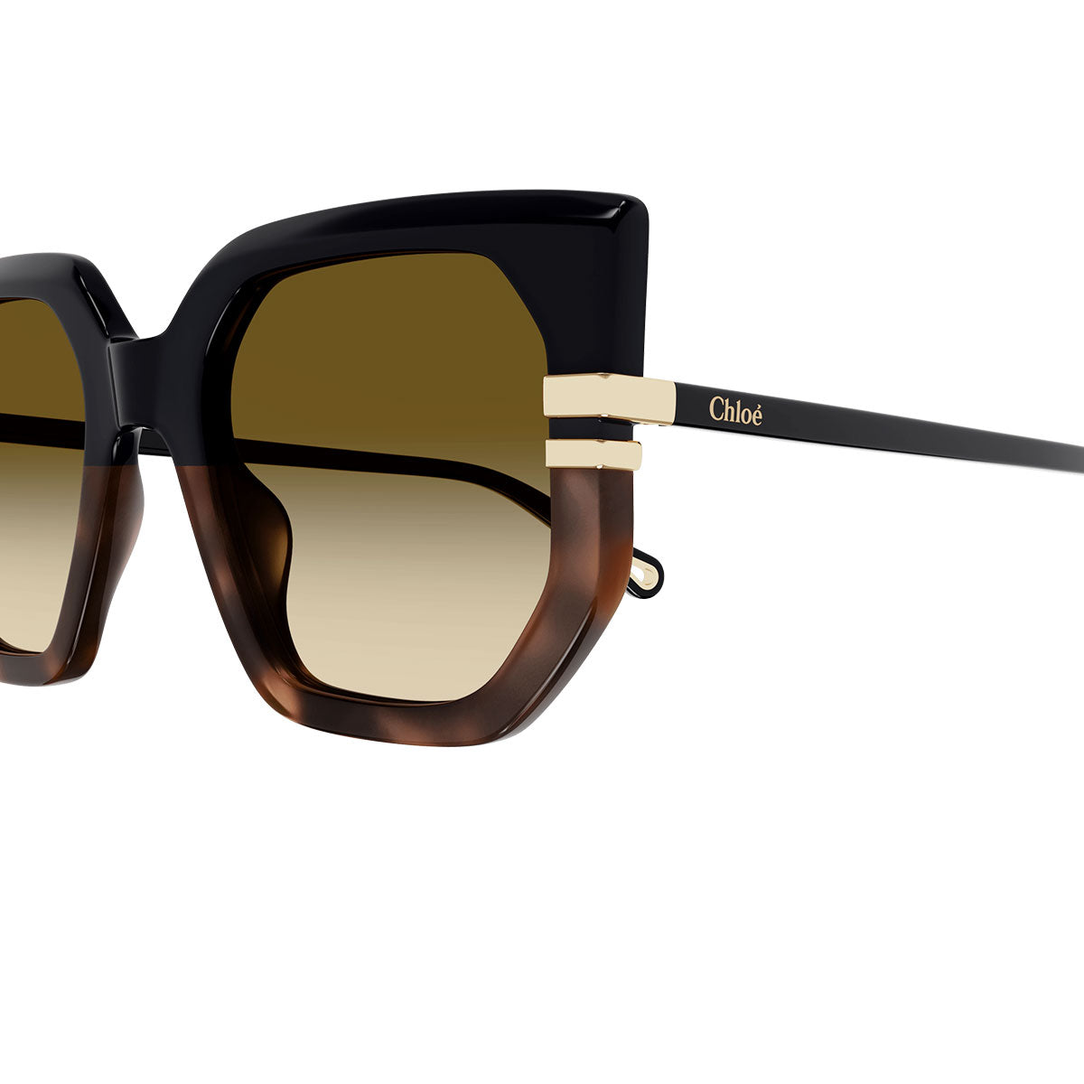 La face avant est enrichie par des inserts arrondis en métal doré, un détail précieux qui ajoute élégance et finesse, créant un contraste harmonieux avec la monture. La référence bicolore introduit de nouvelles teintes miel et vert, fraîches et recherchées, parfaites pour valoriser des looks modernes et tendance.
