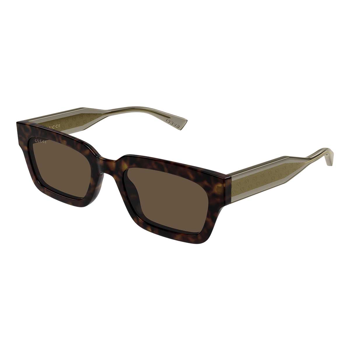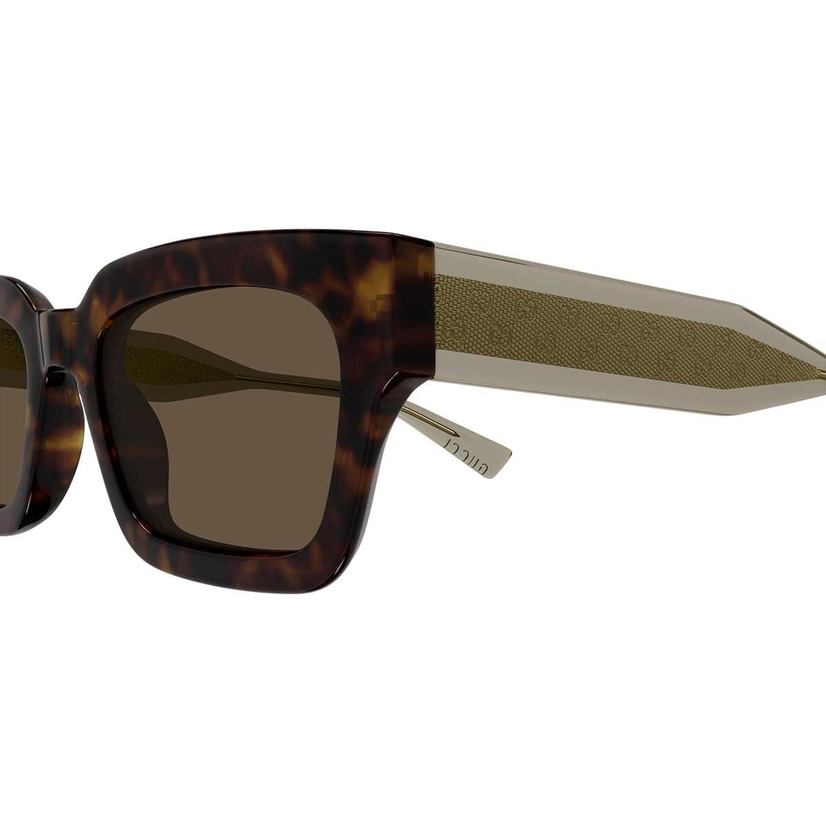 La forme masculine carrée confère caractère et personnalité, faisant de ce modèle un choix idéal pour ceux qui privilégient un style affirmé et contemporain. Les couleurs transparentes s’accordent avec différents types de verres, y compris les exclusifs verres Guccissima disponibles sur certaines SKU, pour un look encore plus emblématique.