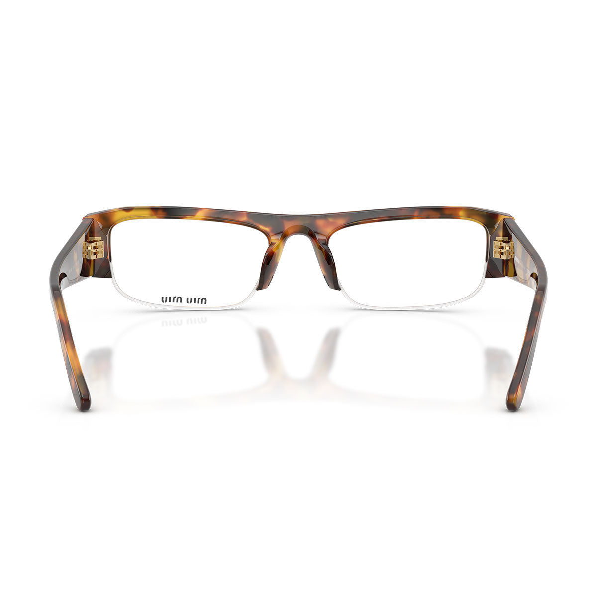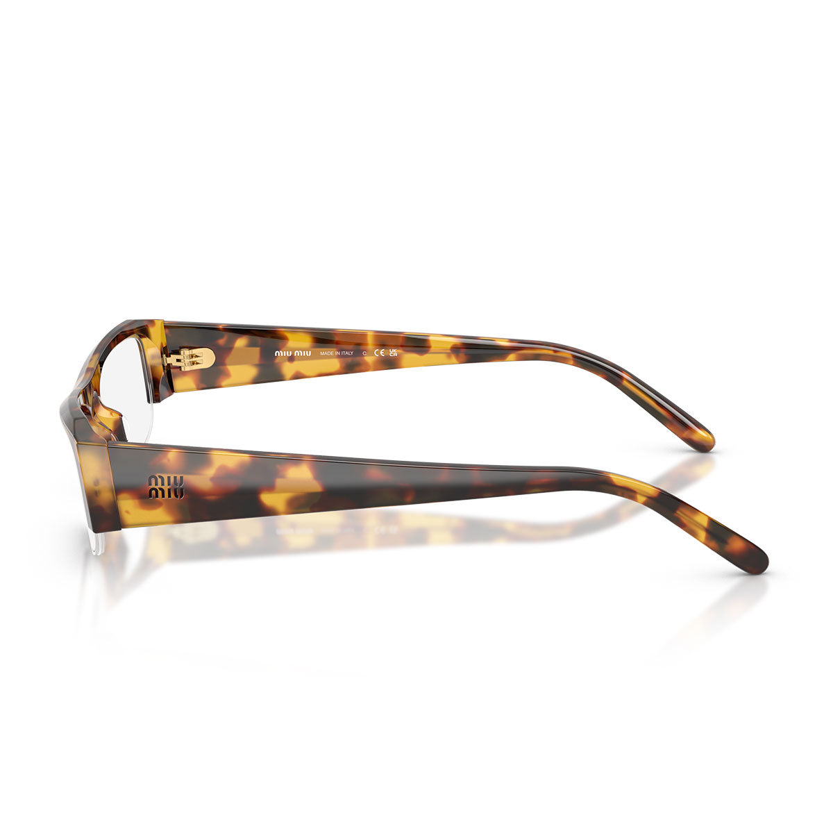 Les branches fines, ornées du logo vertical Miu Miu en métal doré, ajoutent une touche d’éclat sans alourdir le look, en conservant une esthétique épurée et moderne.
