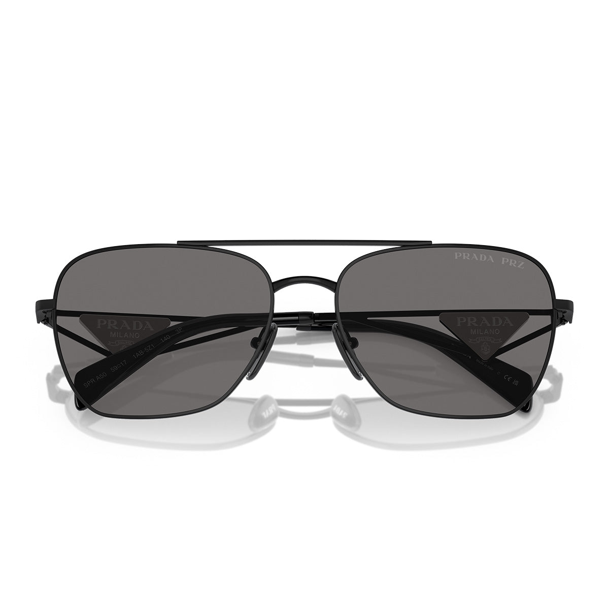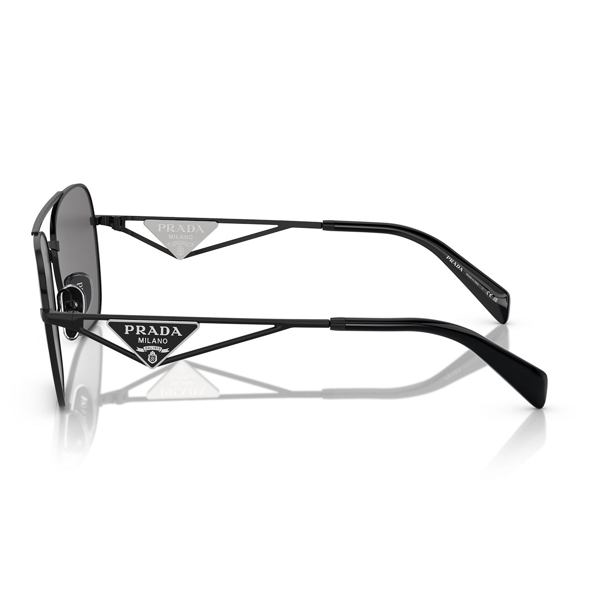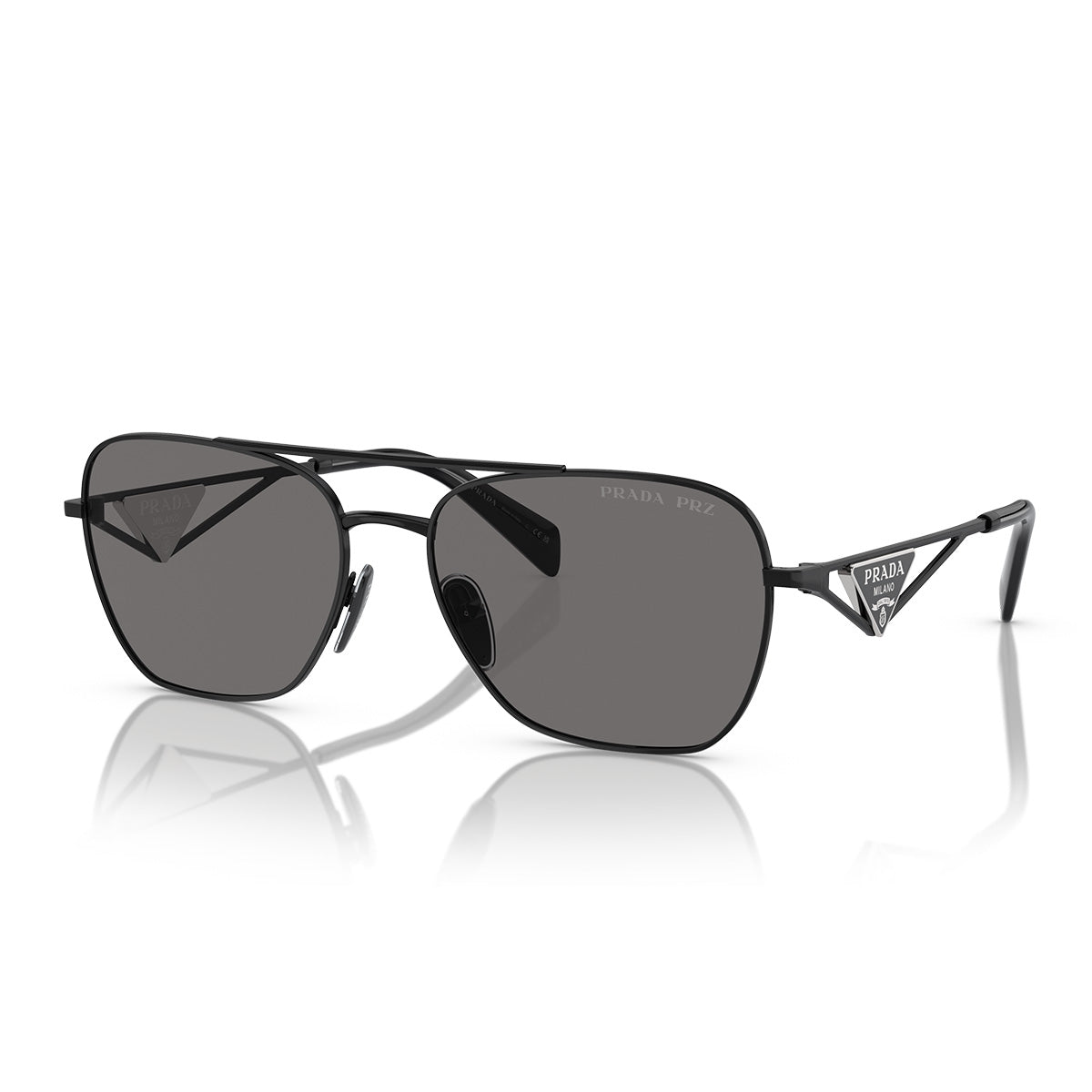 Les lunettes de soleil Prada PRA50S allient des formes douces et des détails architecturaux pour un look distinctif et contemporain. La silhouette pilote, élégante et légèrement arrondie, s'associe à des branches droites et angulaires en métal ajouré, ornées de la plaque triangulaire iconique avec le logo Prada inspiré des sacs de la maison. Les verres sont disponibles en teintes pleines de caractère, ainsi qu'en option dégradée couleur caramel, pour un style sophistiqué et toujours reconnaissable.