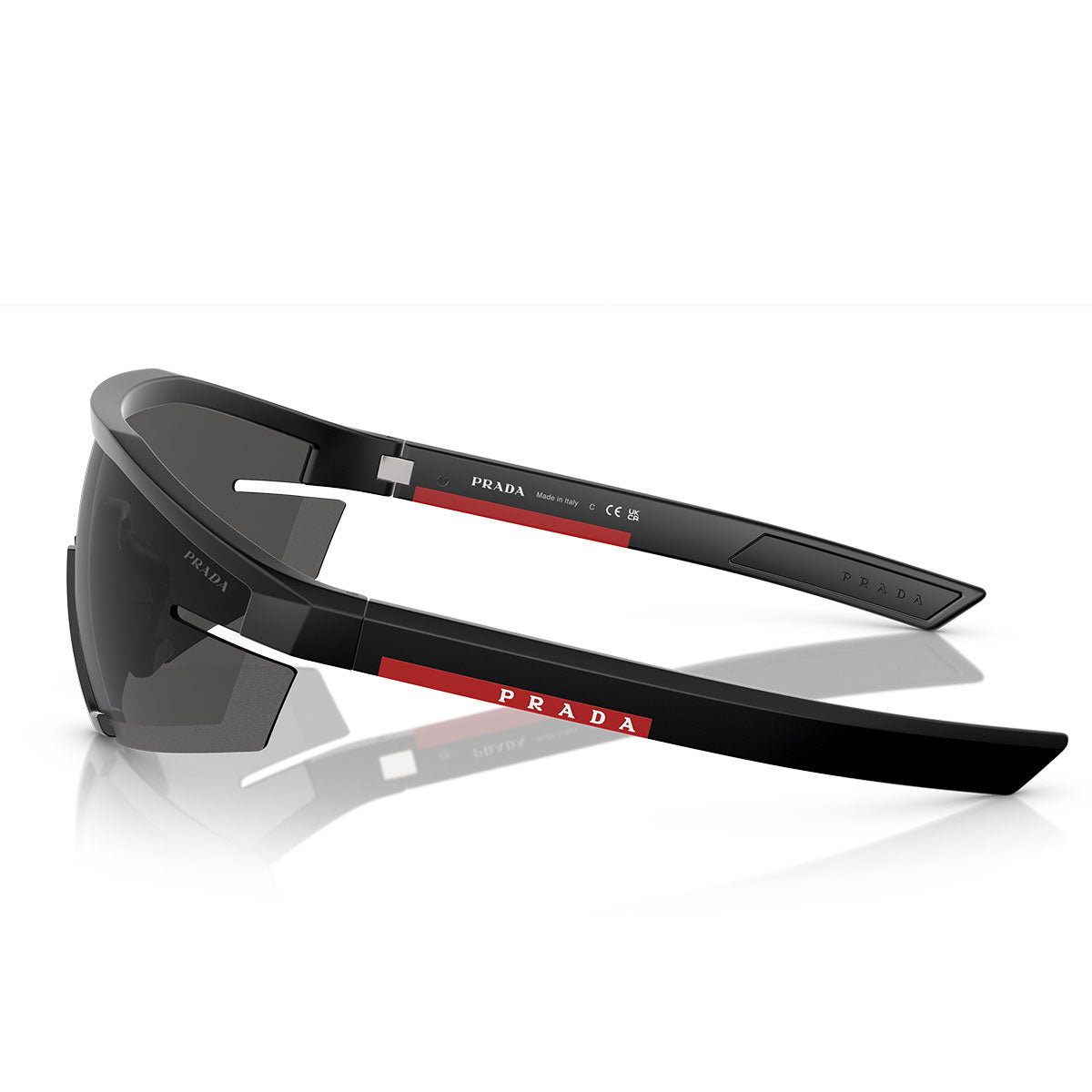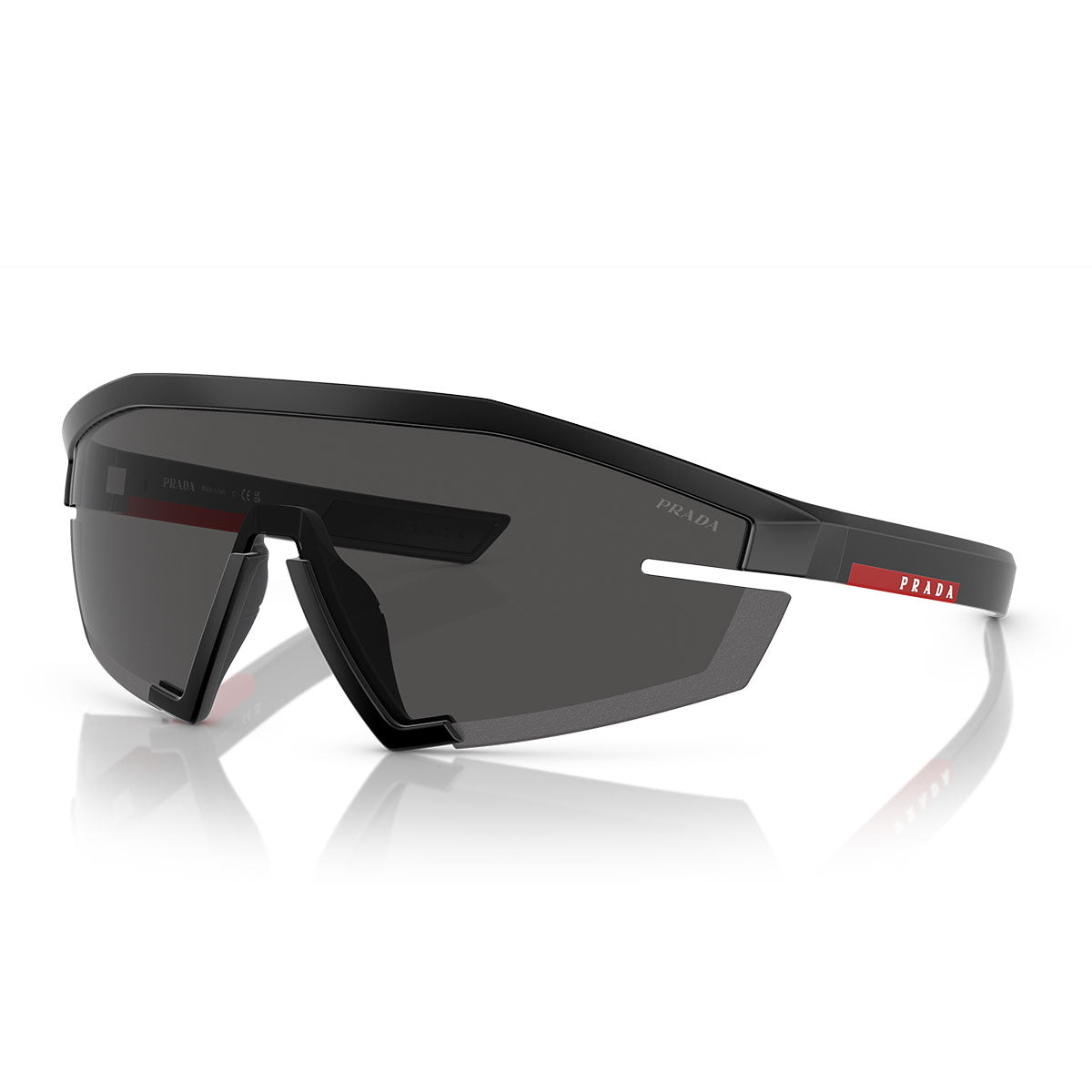 Prada Lunettes de Soleil PS03ZS 1BO06F Ligne Rouge Noir Mat/Gris Foncé Unisexe