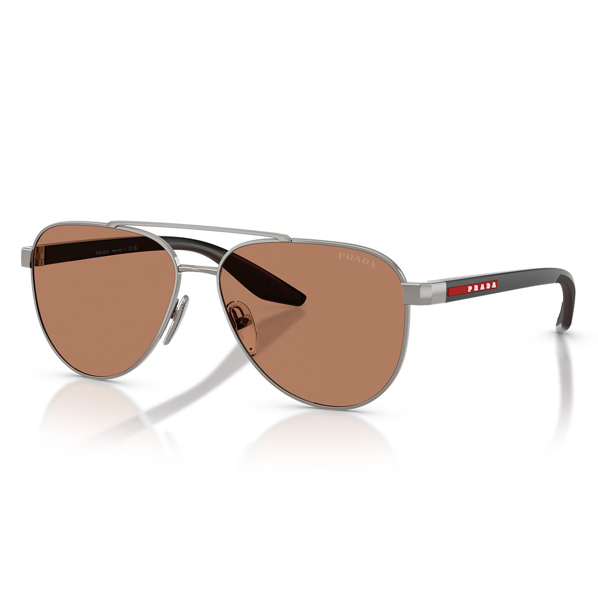 Fabriqués avec métal ultraléger et nylon fiber, ces lunettes de soleil présentent une forme pilote au design moderne et minimaliste, parfaite pour ceux qui souhaitent un style fashion-forward sans renoncer à l’élégance. Les branches bi-injectées sont dotées de inserts en caoutchouc qui assurent un confort de port toute la journée, enrichies par l’iconique logo Prada Linea Rossa qui ajoute une touche d’exclusivité sophistiquée.