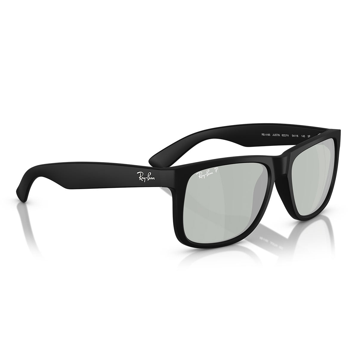 Ray-Ban Lunettes de Soleil RB4165 622/Y4 Justin Caoutchouc Noir/Vert Miroir Gris Unisexe Polarisées