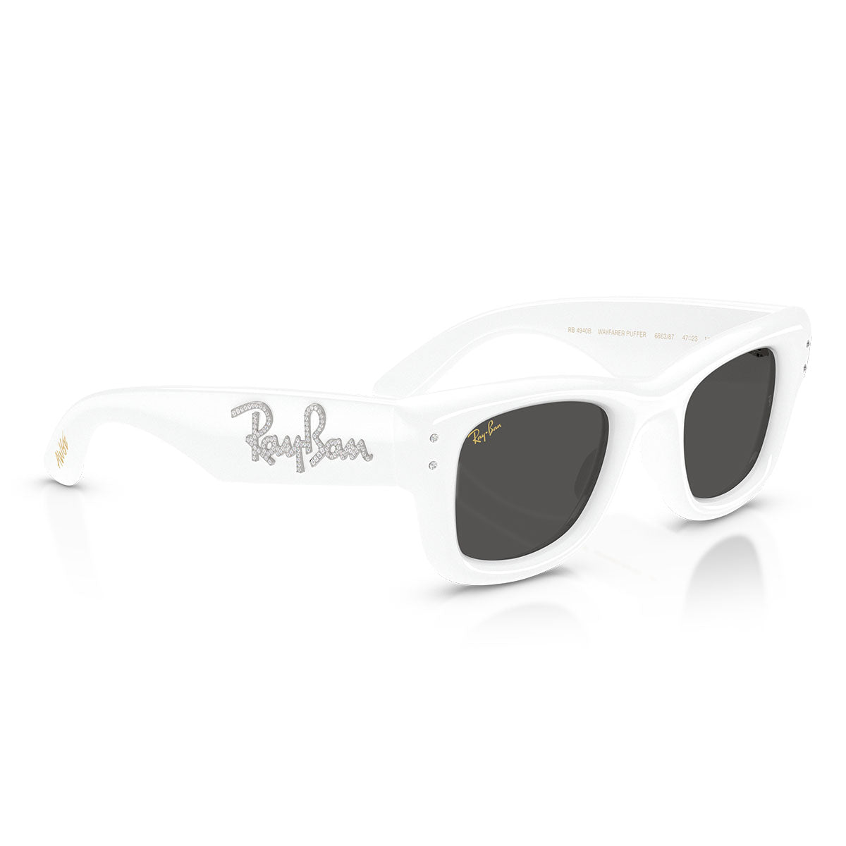 Ray-Ban Lunettes de Soleil RB4940B 686387 Wayfarer Puffer X ASAP Rocky Blanc Avec Strass/Ultra Noir Unisexe