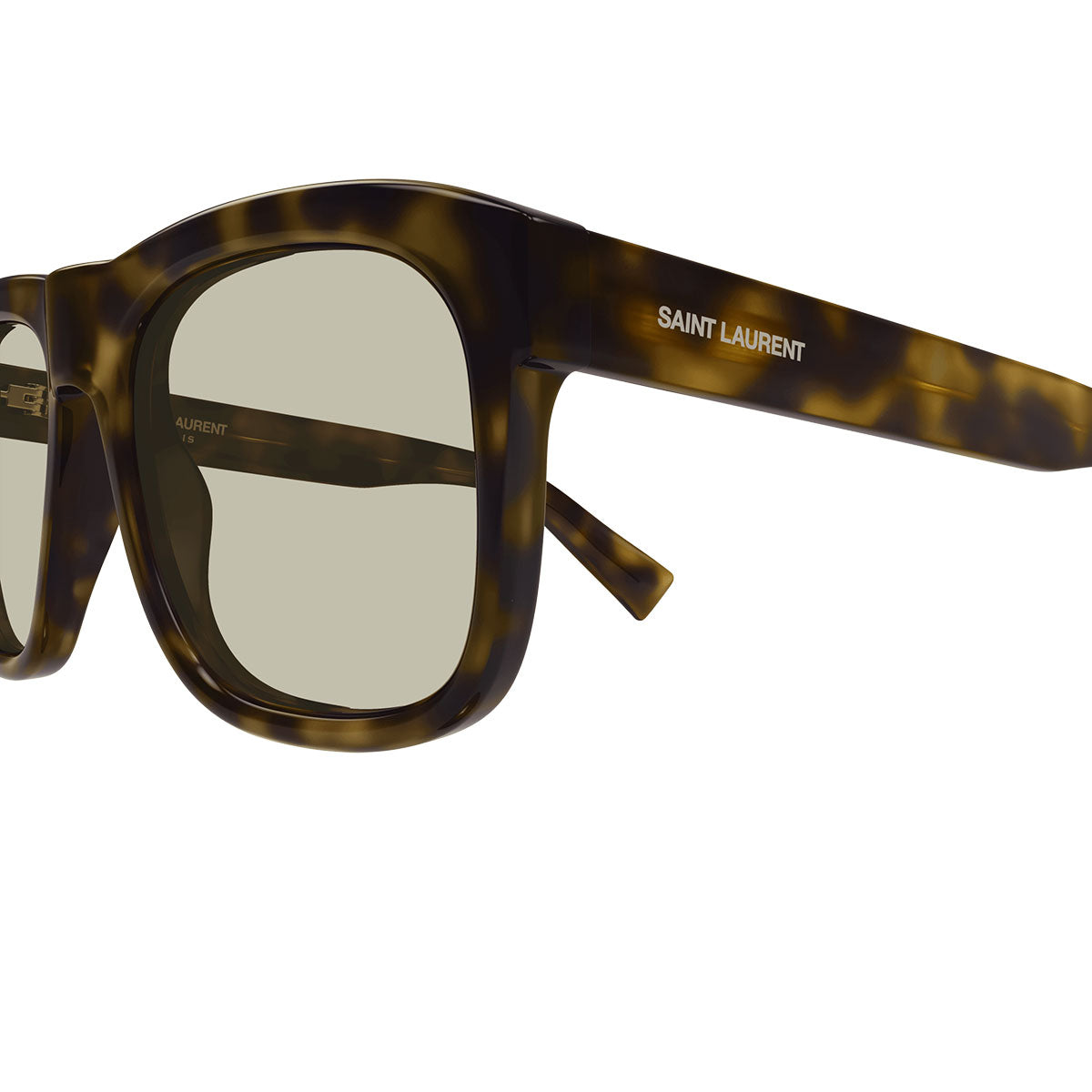 Une monture audacieuse oversize carrée qui se distingue par le front arrondi, au design affirmé et sophistiqué. Directement inspiré par les indications de Anthony Vaccarello pour la collection homme Automne 2022, ce modèle exprime une vision esthétique forte et contemporaine. Le jeu chromatique entre les nuances de l'acétate sur le front et les branches transparentes avec âme en métal visible donne profondeur et caractère à la monture. Le logo Saint Laurent, gravé au laser sur les deux âmes en métal, est visible à travers l’acétate transparent, offrant un détail distinctif et recherché. Un accessoire statement pour ceux qui recherchent style et identité dans chaque détail.