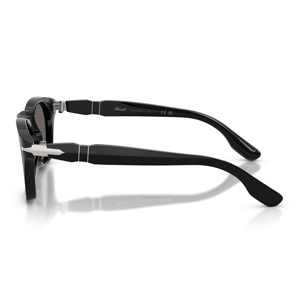 Jednym z wyróżniających elementów modelu jest wkręt „P” wygrawerowany na zawiasie, ikoniczny detal, który przemienia funkcjonalny komponent w prawdziwy estetyczny znak rozpoznawczy marki. Ten element podkreśla dbałość Persol o innowacje i precyzję rzemieślniczą.