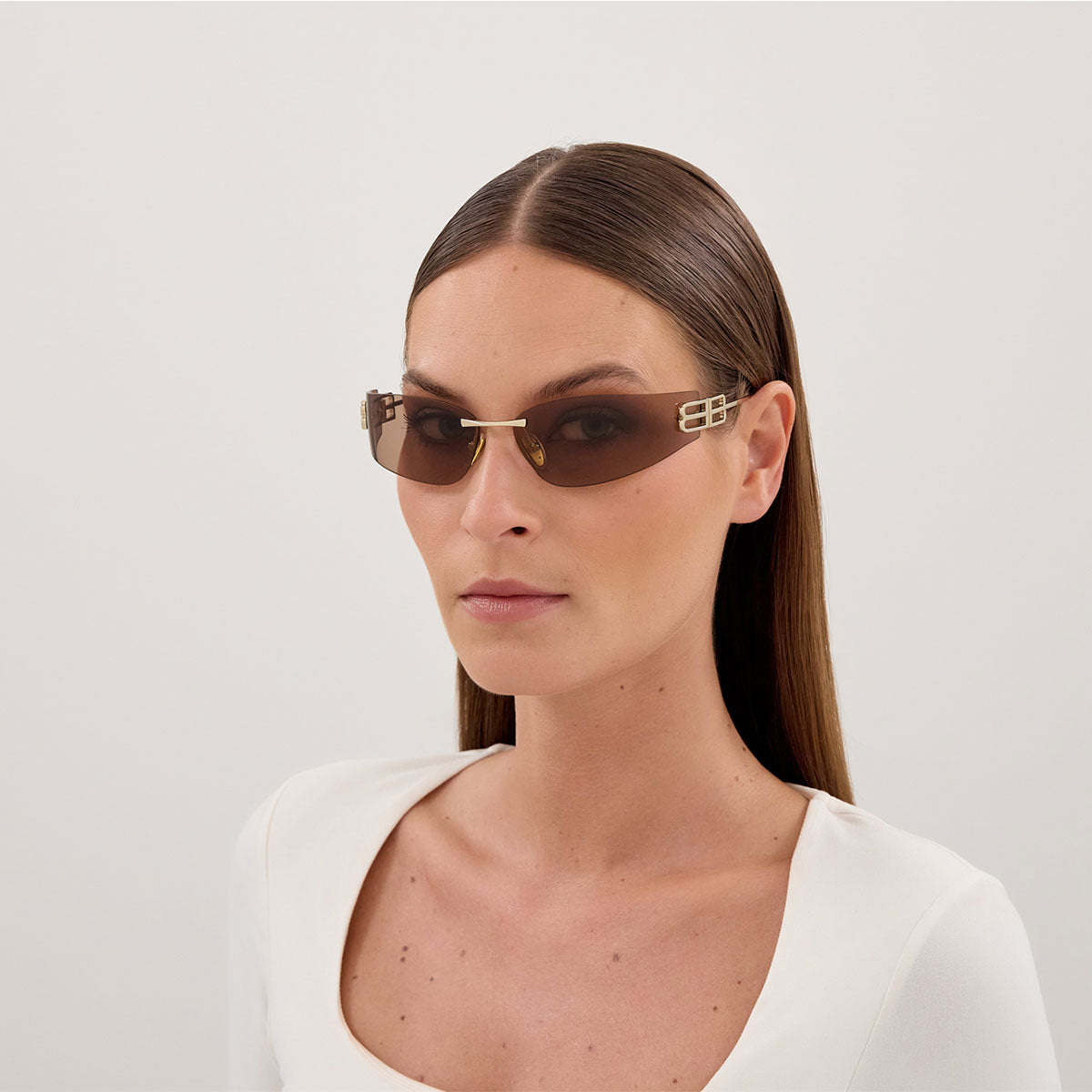 Ekstremalny kształt kociego oka, połączony z owijającymi soczewkami, podkreśla spojrzenie i nadaje odważny, kobiecy urok. Osobowość modelu definiuje linia z dużym logo BB Stretched cut-out, ikoniczny detal nawiązujący do niepowtarzalnego DNA marki.
