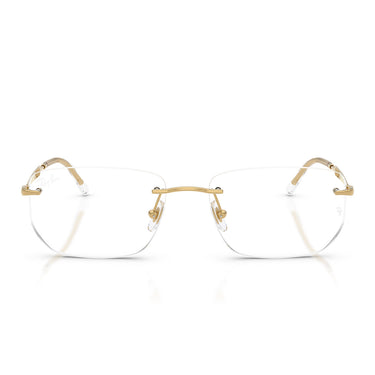 Oprawa posiada prostokątne soczewki bez oprawek, podtrzymywane przez trzyczęściową metalową konstrukcję, która gwarantuje wytrzymałość i stabilność, zachowując jednocześnie minimalistyczną estetykę.