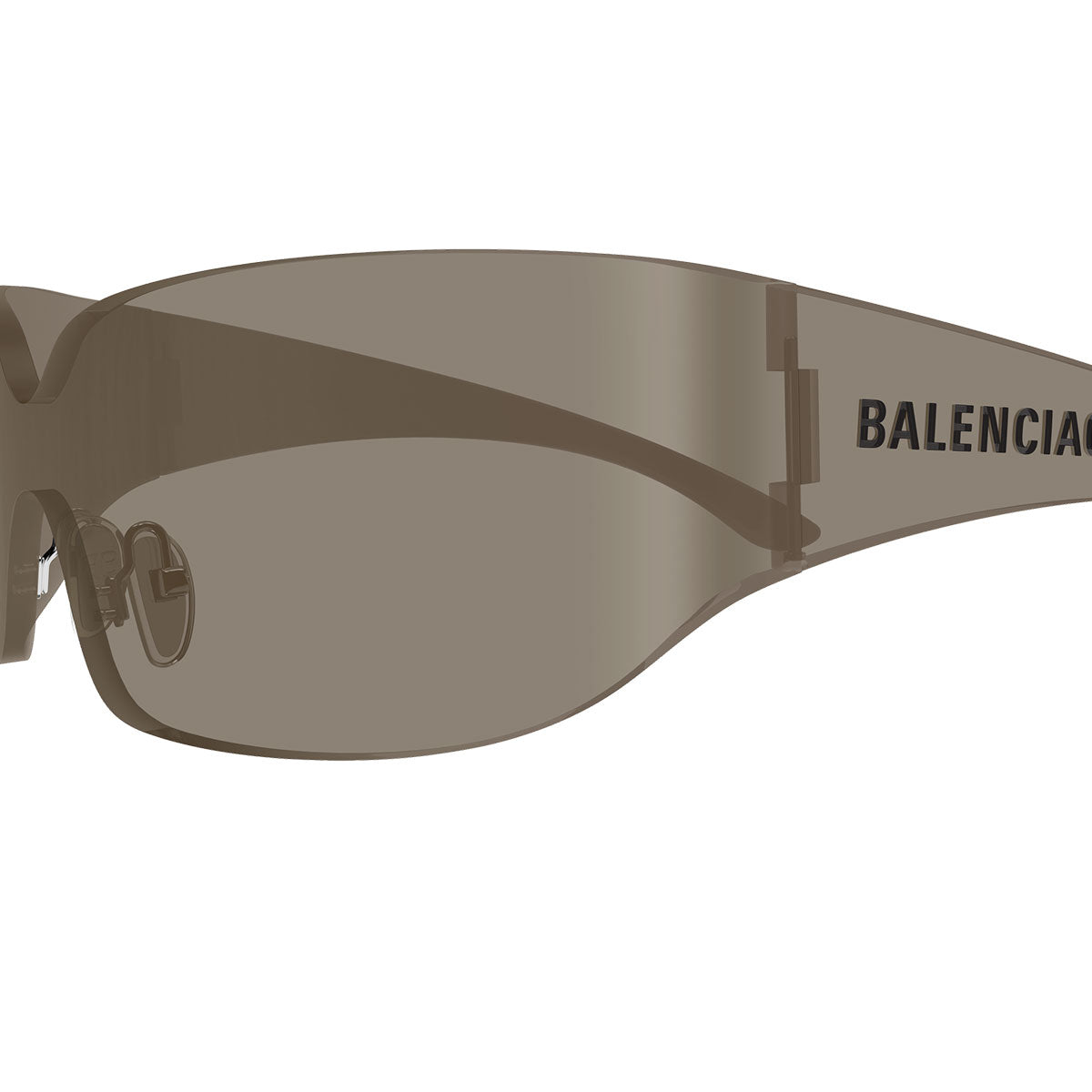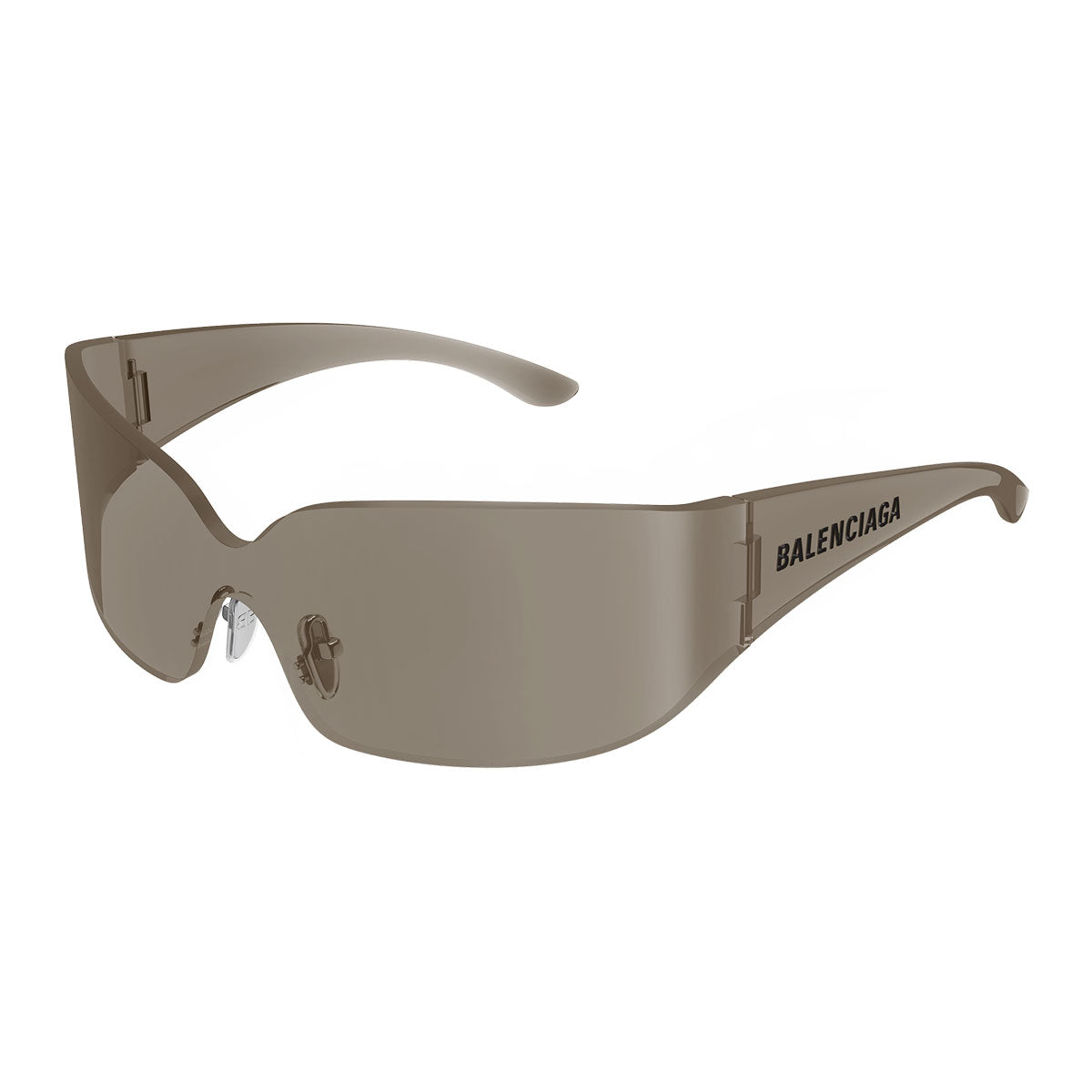 Dettagli esclusivi come la placchetta metallica con logo BB applicata all’altezza del naso e il logo Balenciaga in bassorilievo sul musetto sinistro completano il look con un tocco tecnico e sofisticato.