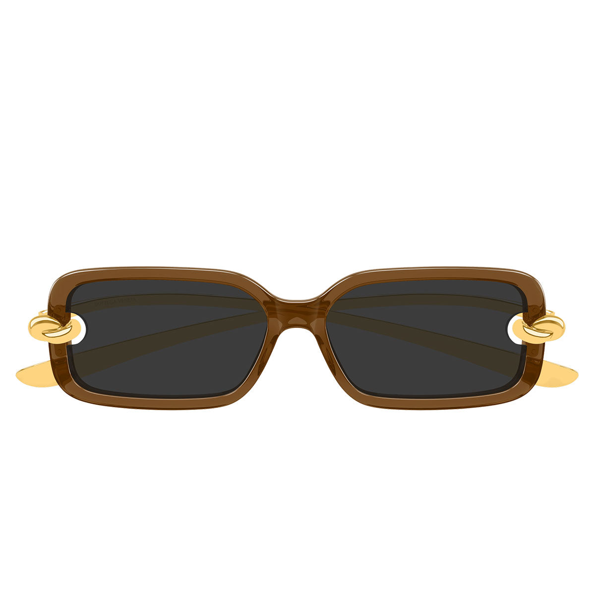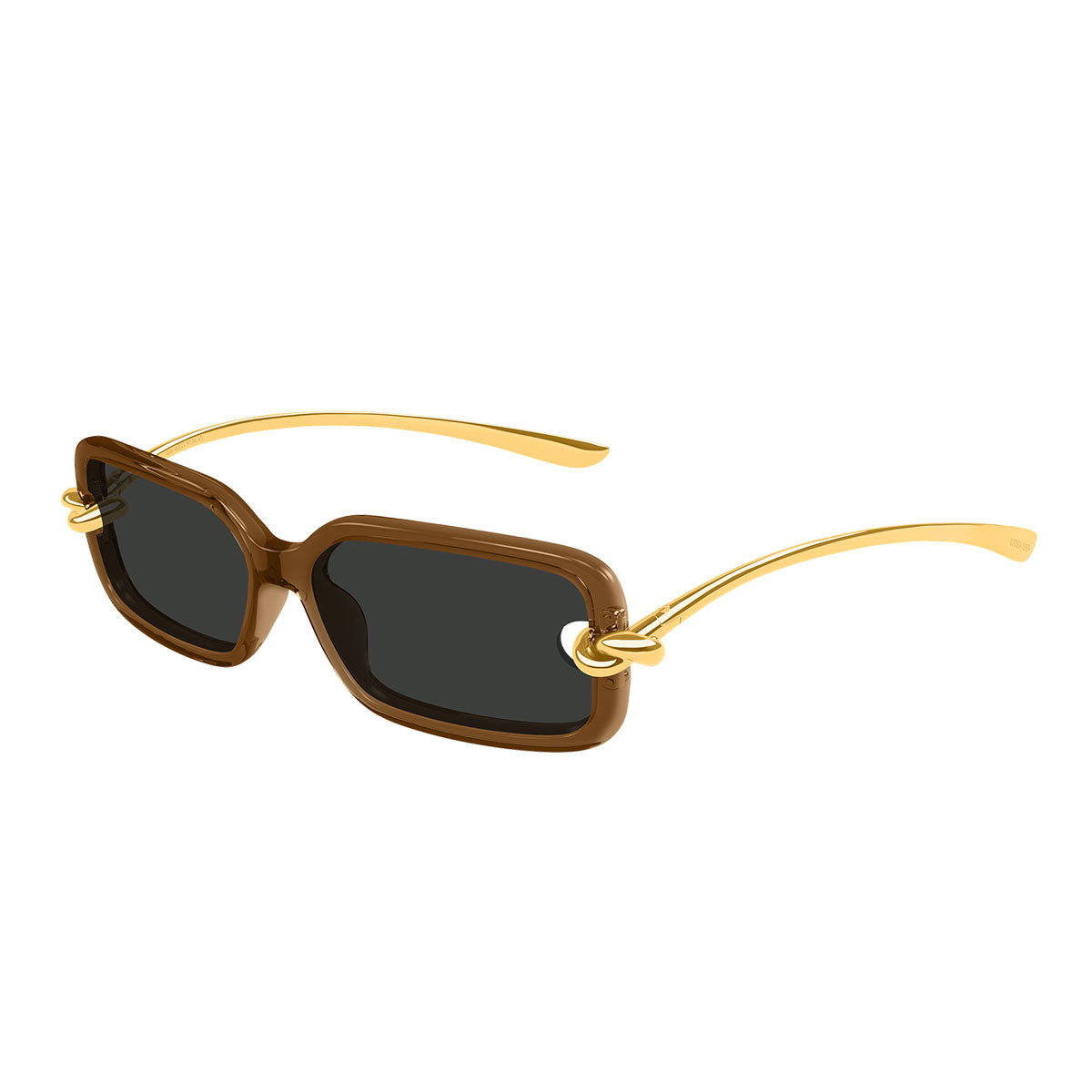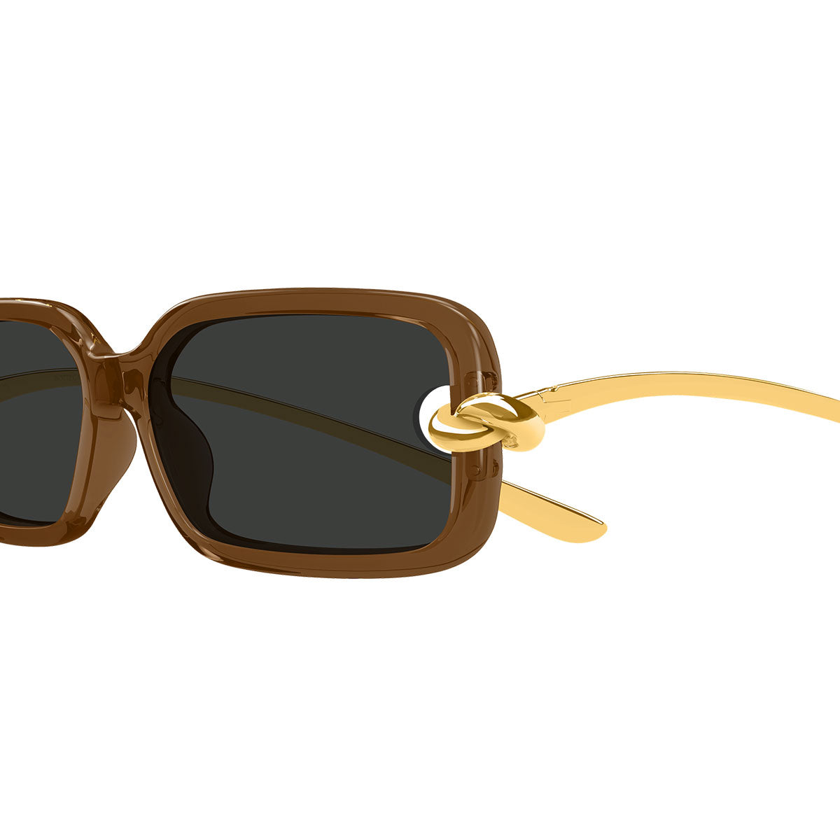 Elemento protagonista è l’iconico nodo Bottega Veneta, che abbraccia la montatura attraversando la lente, trasformando l’occhiale in una vera scultura di design. Questo dettaglio distintivo crea un effetto materico unico, enfatizzato dal raffinato mix di plastica e metallo, che aggiunge profondità, contrasto e prestigio al modello.