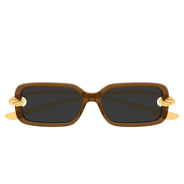 I Bottega Veneta BV1439S propongono un design unisex dal forte impatto visivo, in cui ricerca stilistica e artigianalità contemporanea si fondono in modo innovativo. La forma rettangolare dona carattere ed equilibrio, rendendo il modello versatile e adatto a diversi tipi di viso.